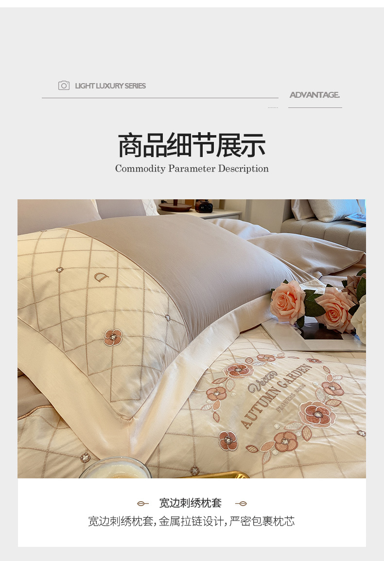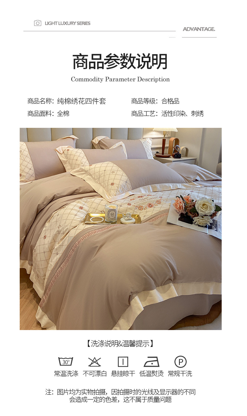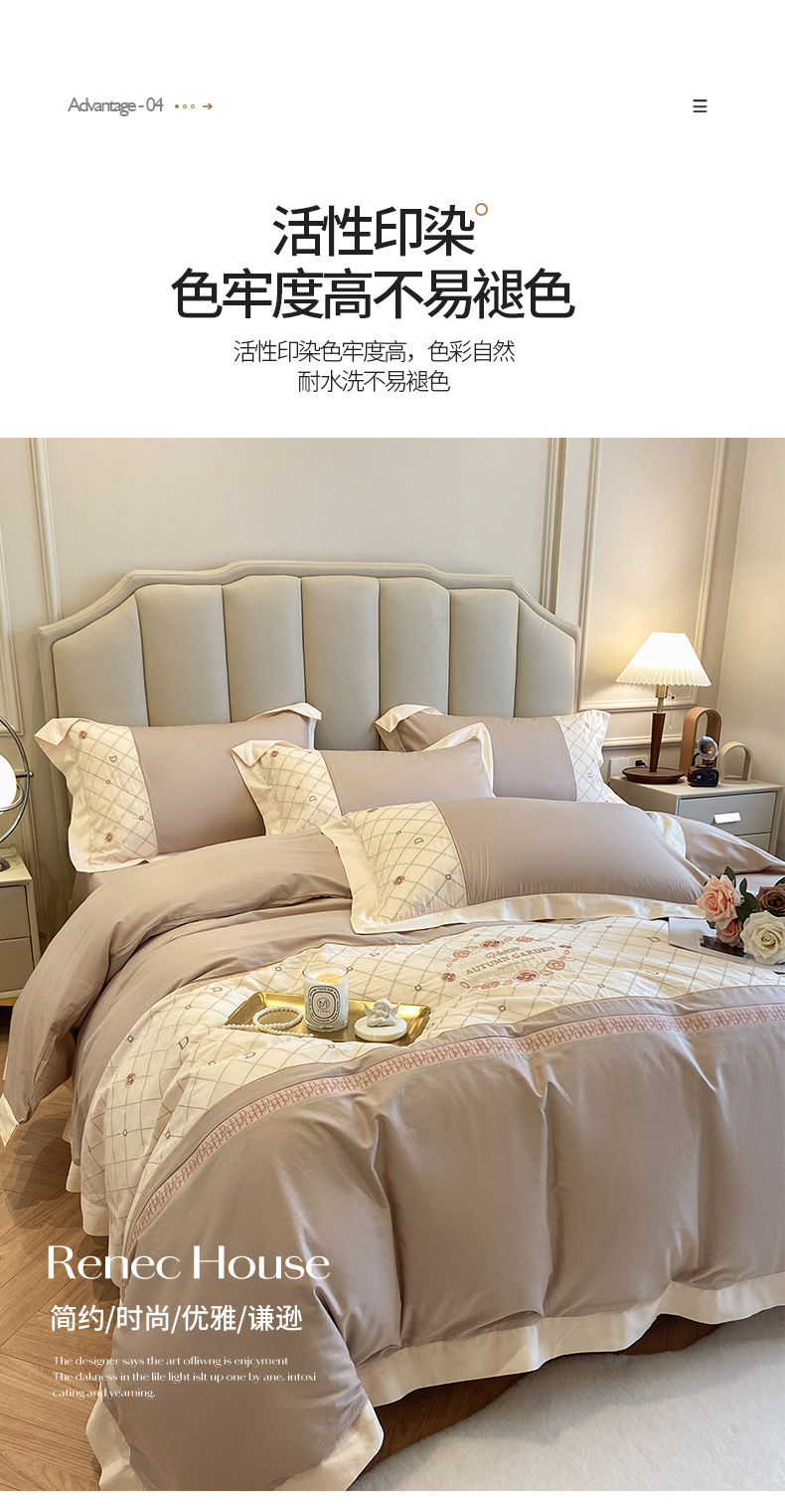 商品名称:丝印良品 2023秋冬保暖60S全棉刺绣拼接菲曼系列四件套 菲曼-奶咖色