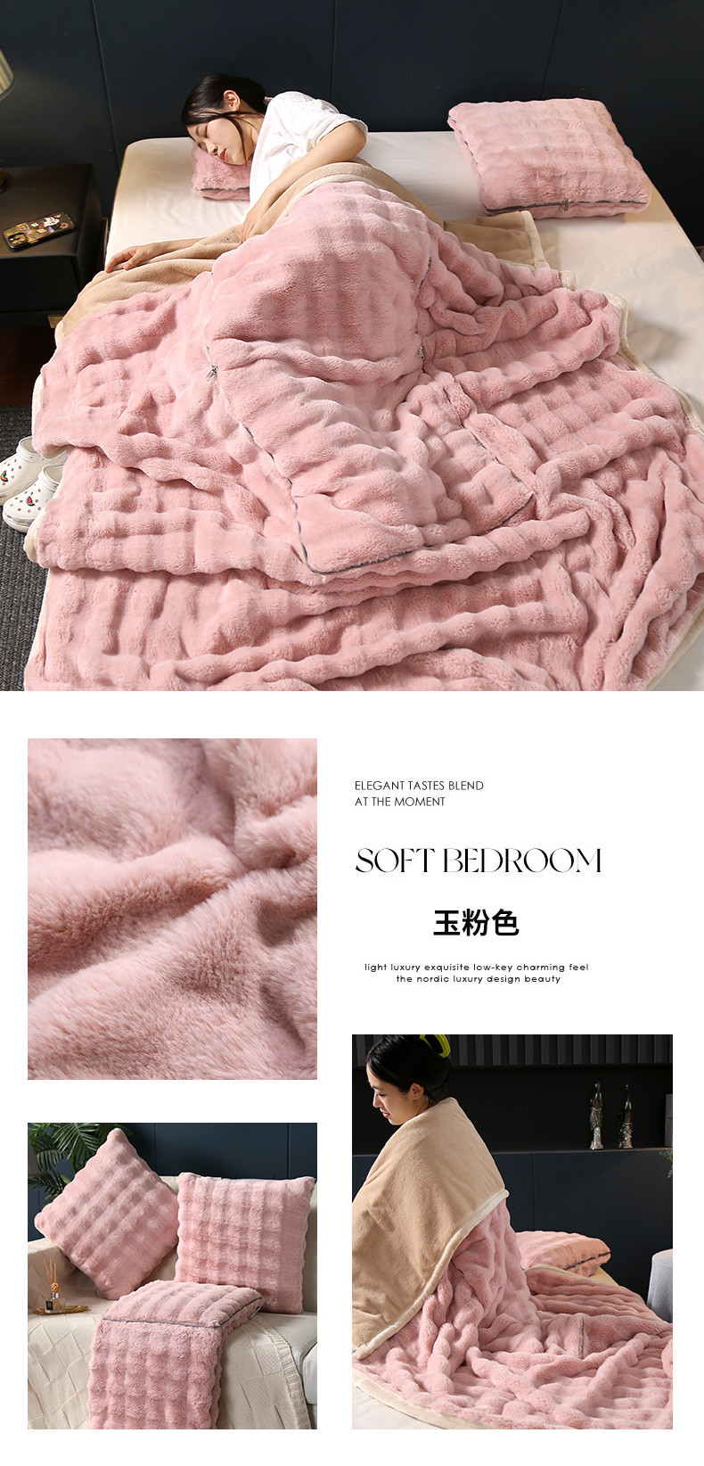 商品名称:伊可爱抱枕被 2023秋冬仿皮草兔毛绒抱枕被盖毯 玉粉色