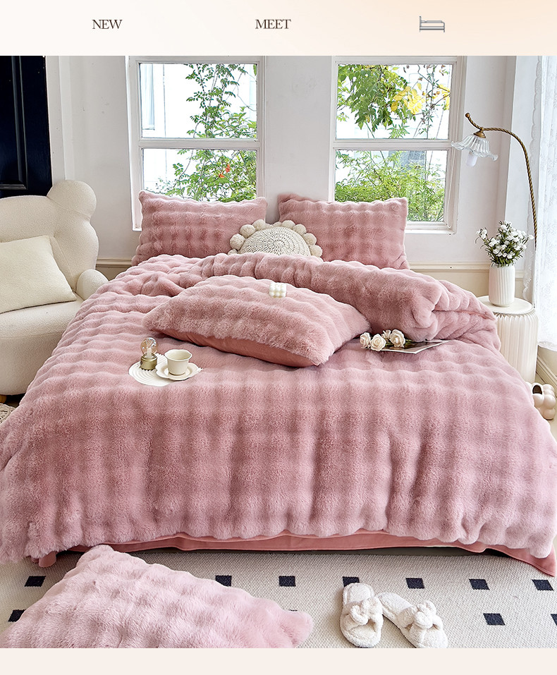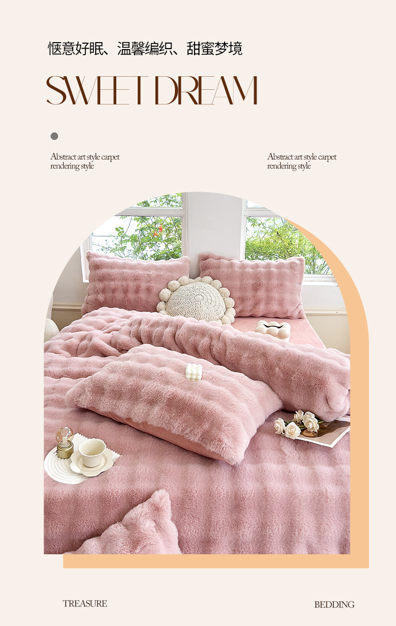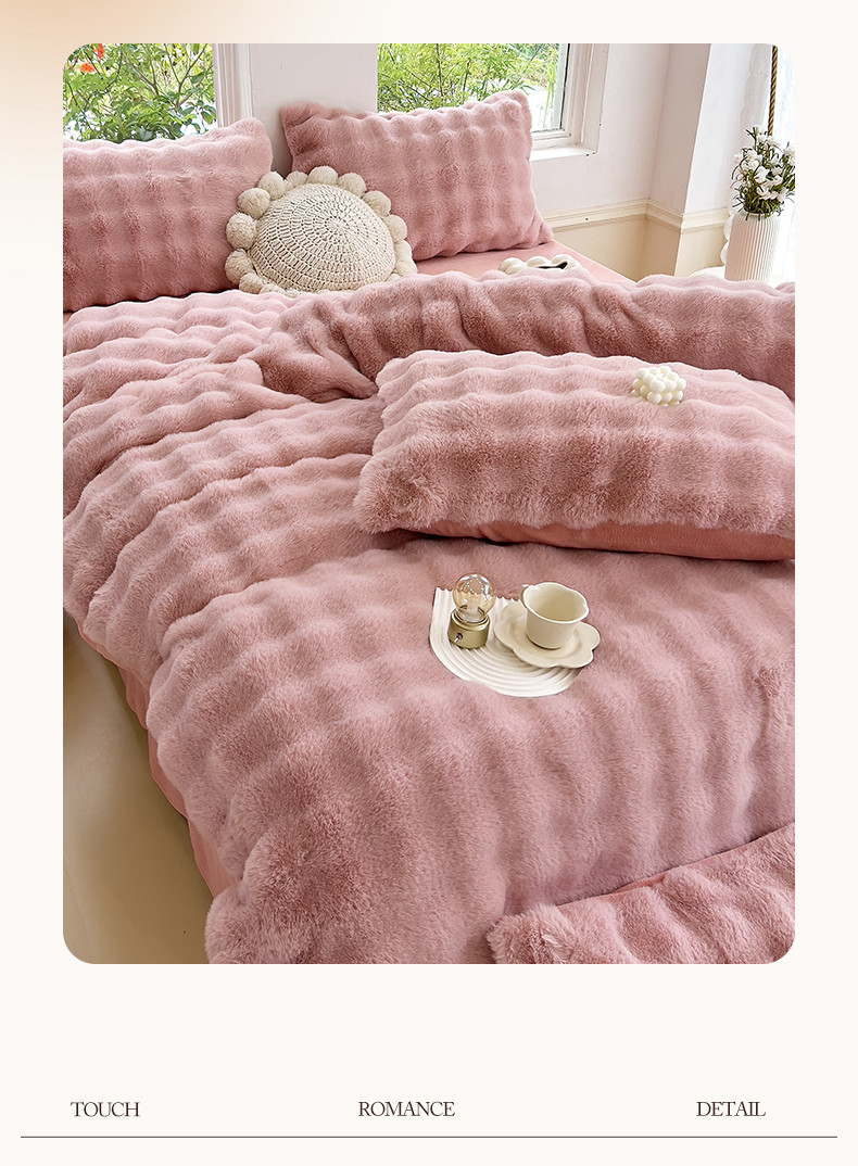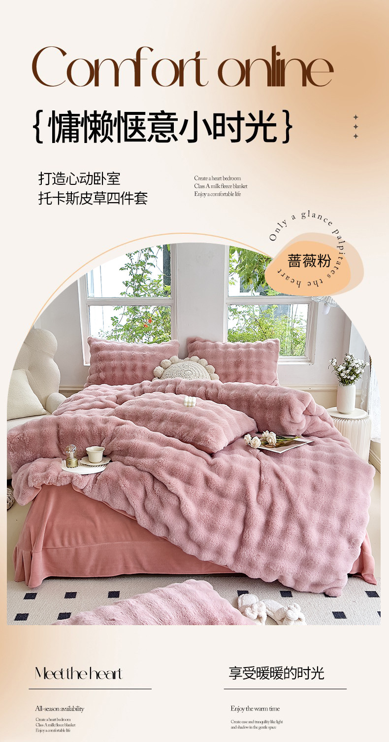 当前位置: 91家纺网 > 商品网购 > 床品套件 > 四件套 > 牛奶绒四件套 > 24新款380克托卡斯仿皮草大泡泡8-9斤牛奶绒兔毛绒兔兔绒四件套 蔷薇粉