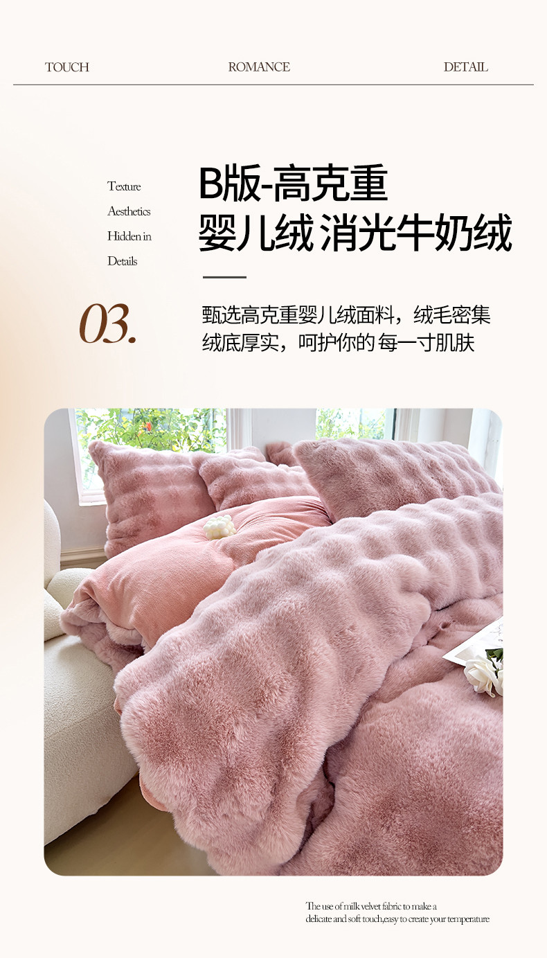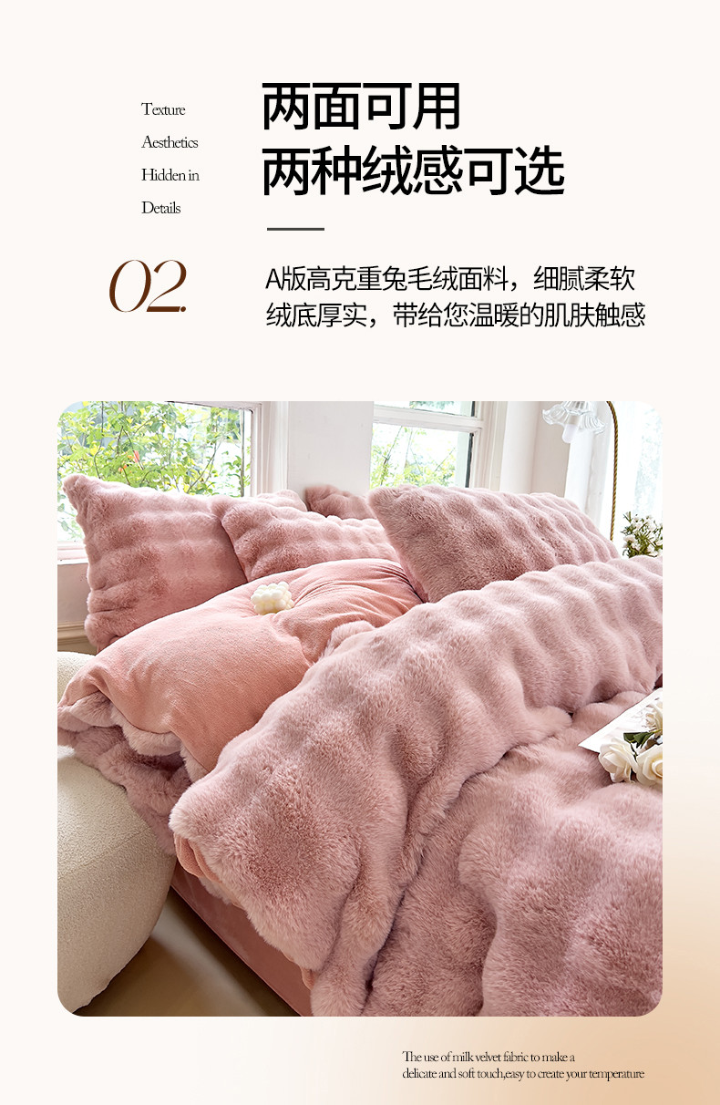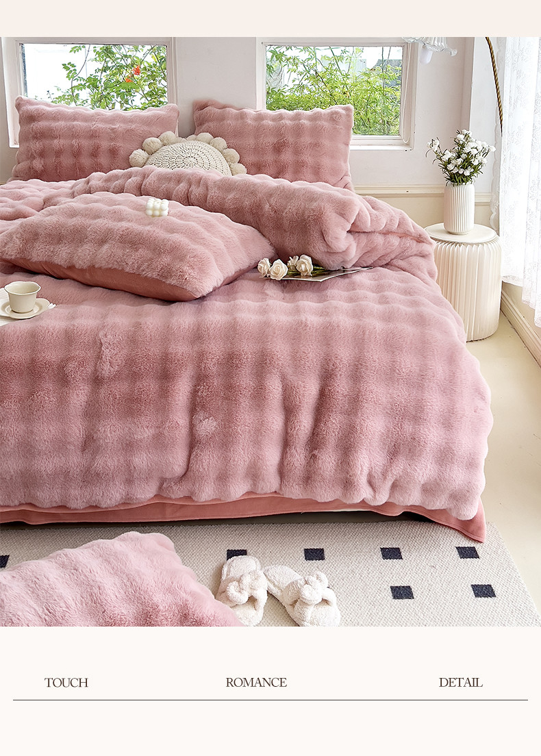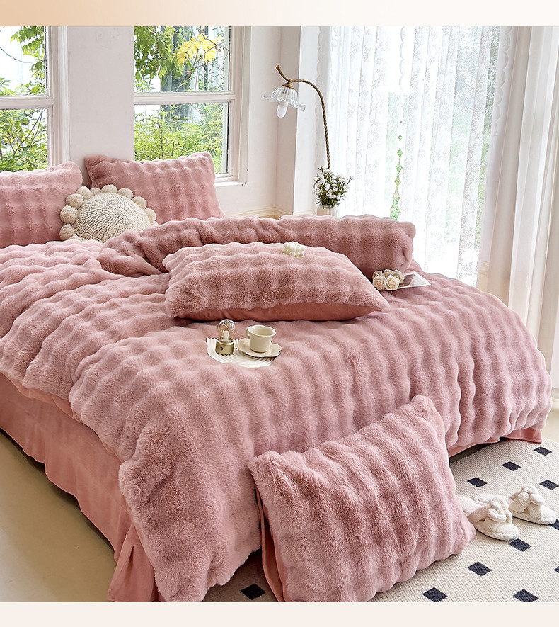 当前位置: 91家纺网 > 商品网购 > 床品套件 > 四件套 > 牛奶绒四件套 > 24新款380克托卡斯仿皮草大泡泡8-9斤牛奶绒兔毛绒兔兔绒四件套 蔷薇粉