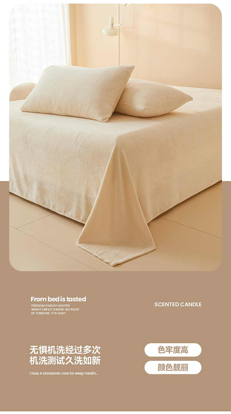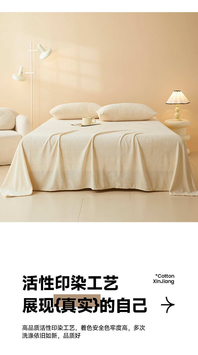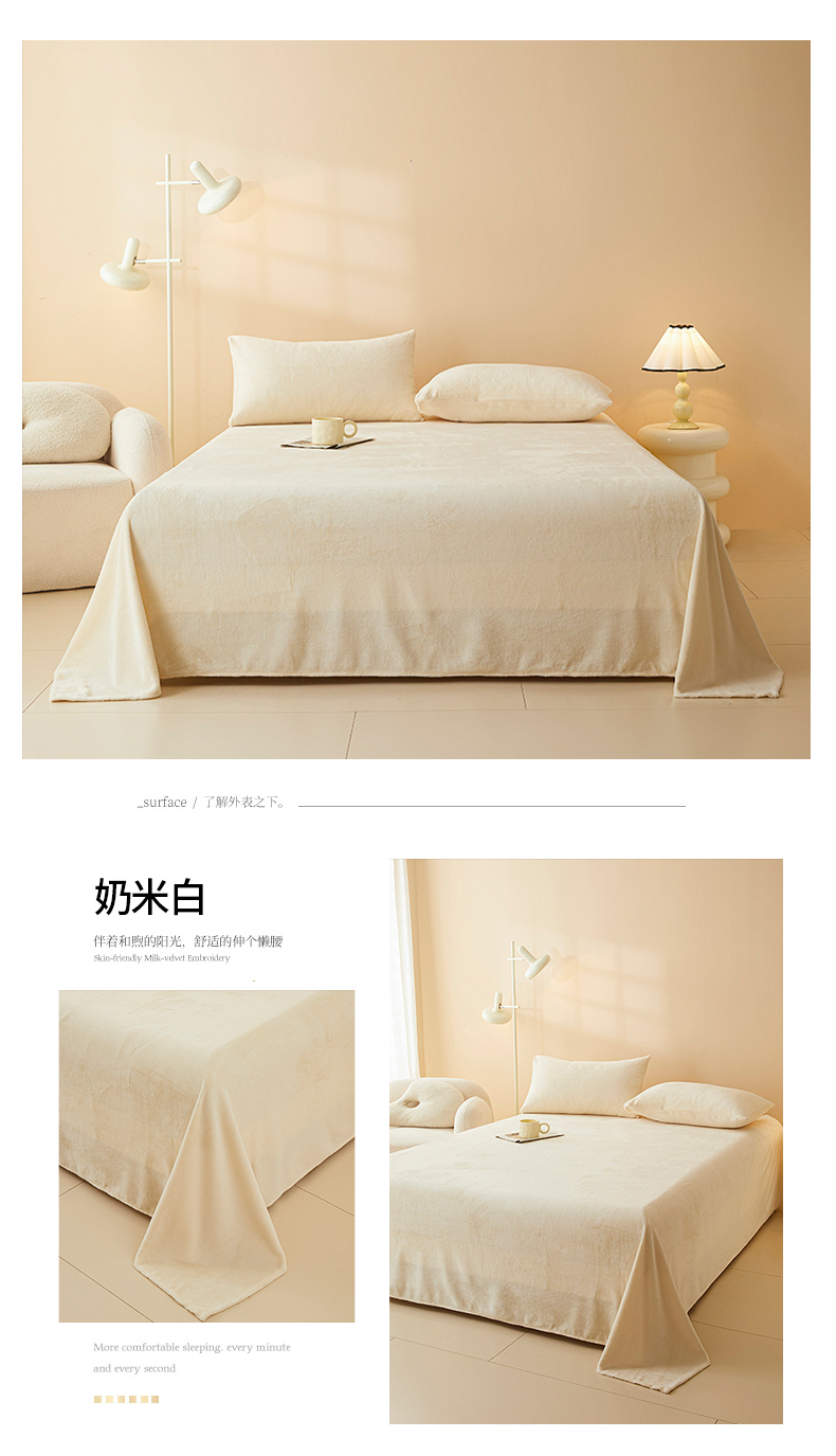 • 91家纺网 家纺一手货源 找家纺 七仙女家纺 2025新款A类230g高克重牛奶绒单品床单 奶米白