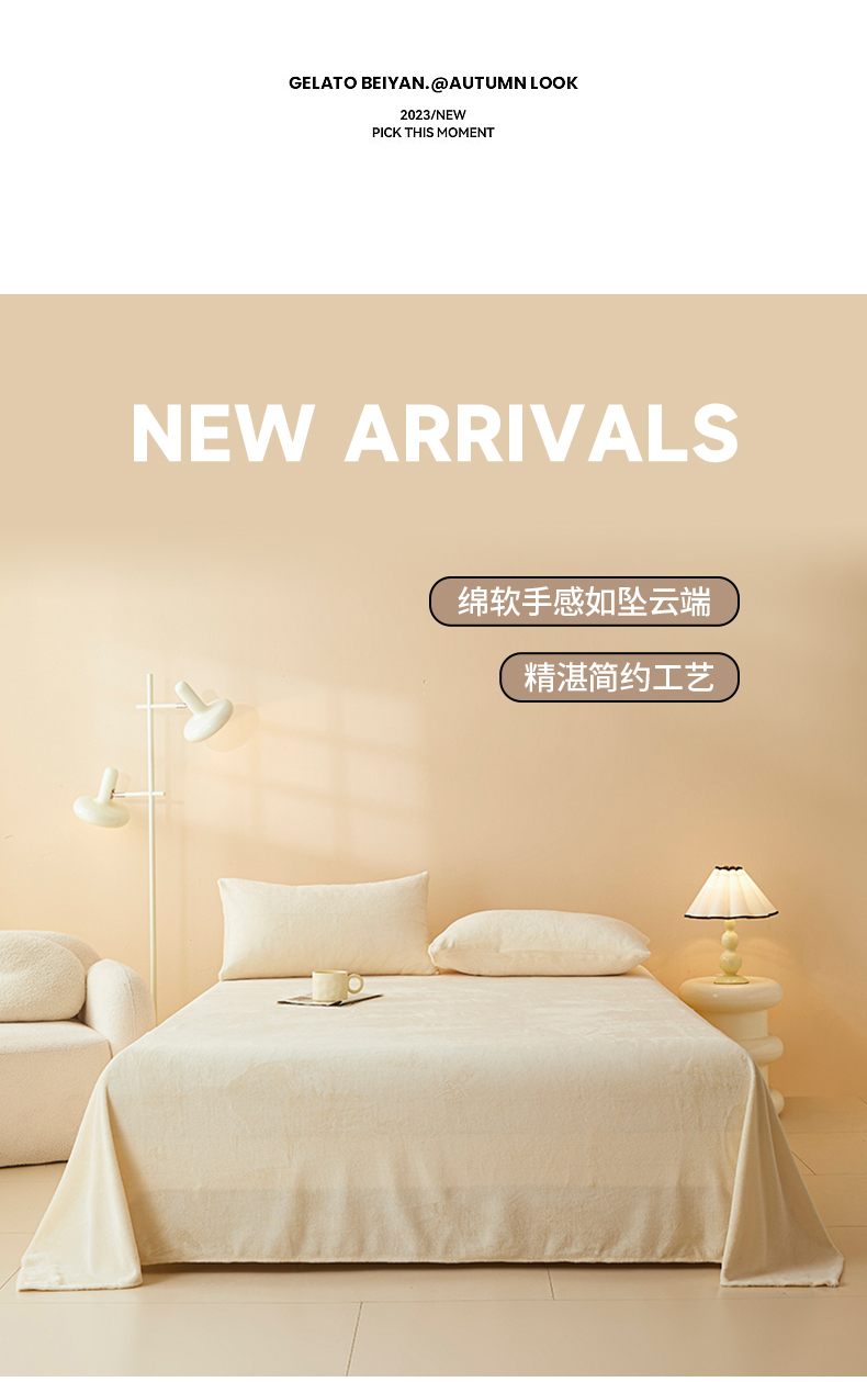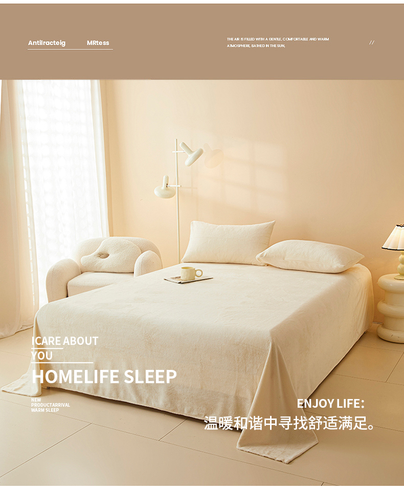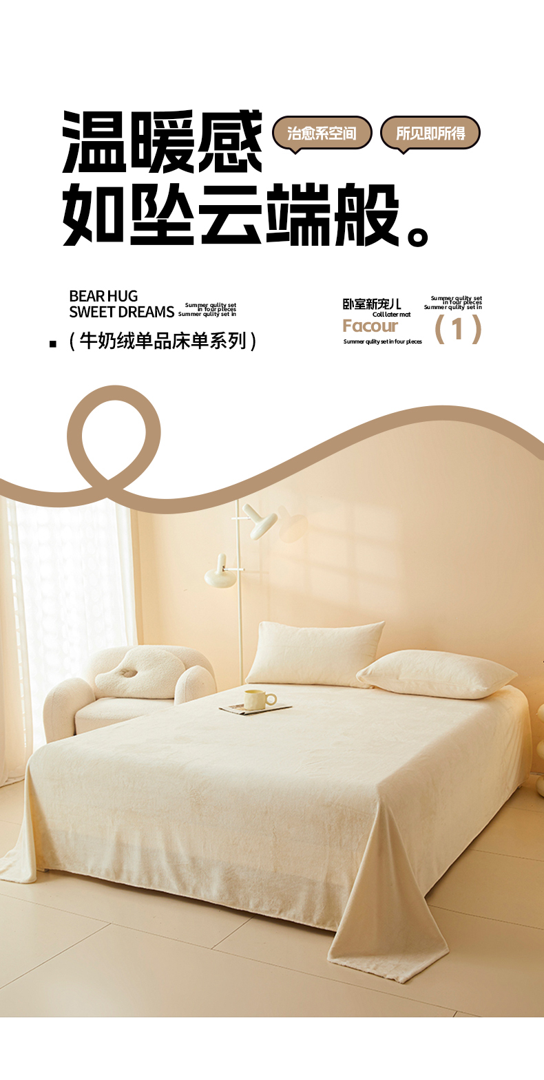 • 91家纺网 家纺一手货源 找家纺 七仙女家纺 2025新款A类230g高克重牛奶绒单品床单 奶米白