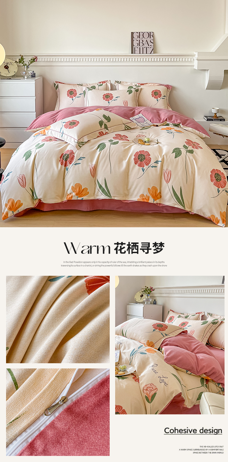 (总)凡客家居 2024新款高克重牛奶绒数码印花双拼角四件套,艾瑞尔,奥罗拉,赫莲娜,罗莉纱,玫瑰情缘,迷雾森林,温斯顿