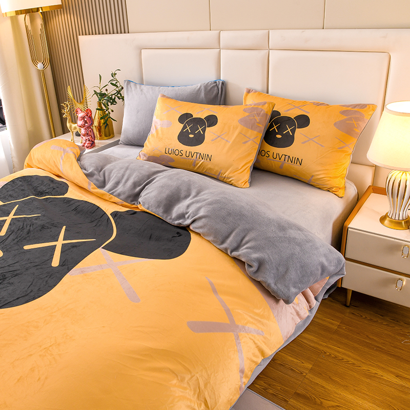 商品名称:爵仕家纺 2023新款暴力熊牛奶绒系列四件套 小黄熊