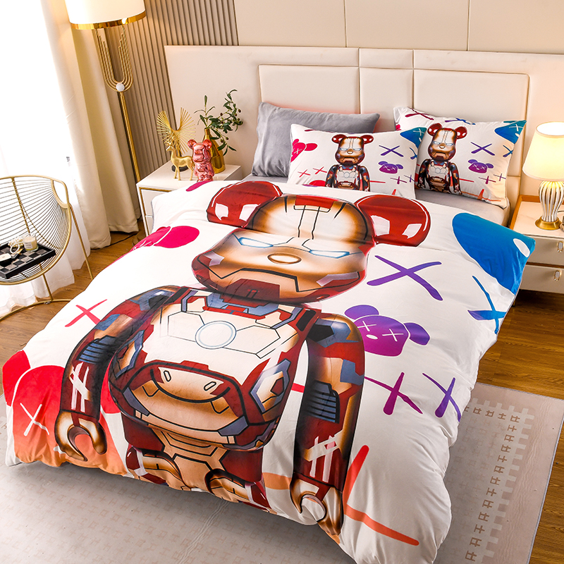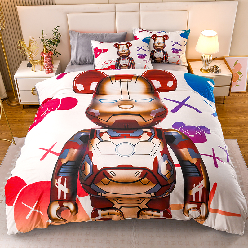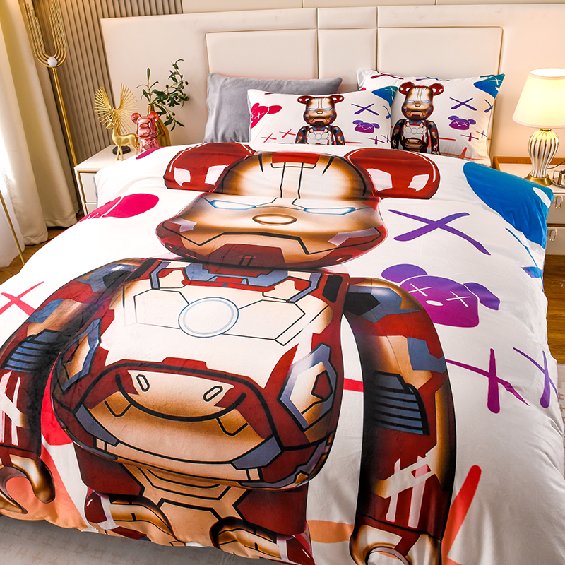 爵仕家纺 2023新款暴力熊牛奶绒系列四件套 钢铁熊