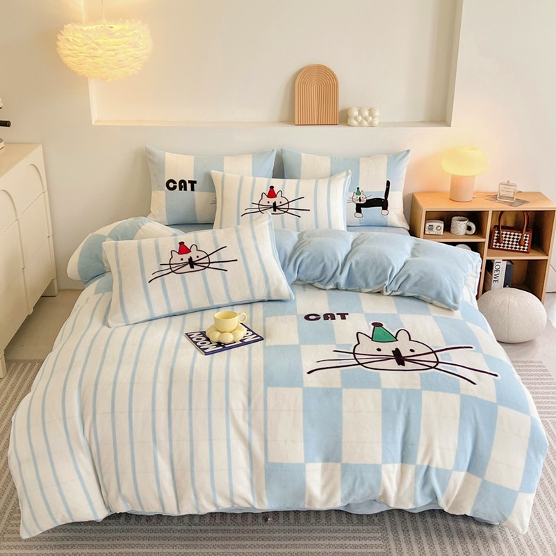 (总)寐居家纺 2025新款贴布绣高克重牛奶绒四件套,安吉拉喵,查理狗,粉糯kitty,皮皮布布