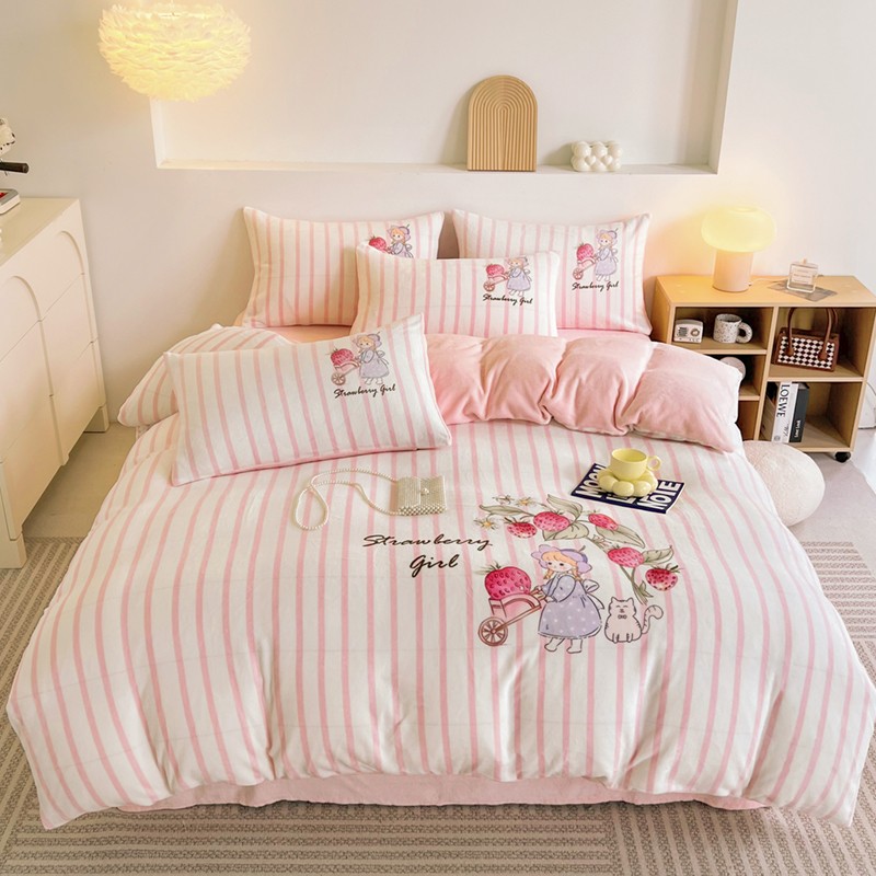 (总)寐居家纺 2025新款毛球毛巾绣牛奶绒四件套,毛球球·巴克汪仔,毛球球·豆蔻女孩,毛球球·奶黄拉布,毛球球·心动KT喵,组合图仅供展示不可下单