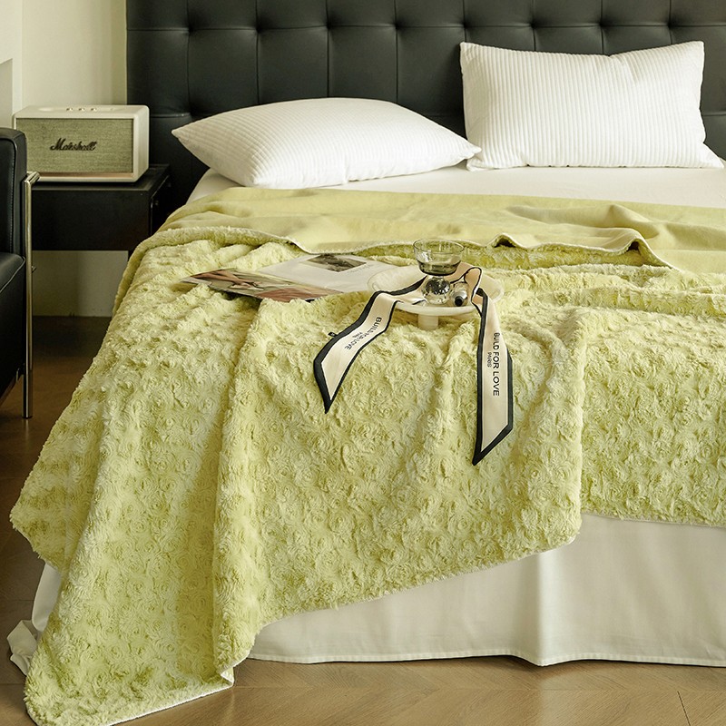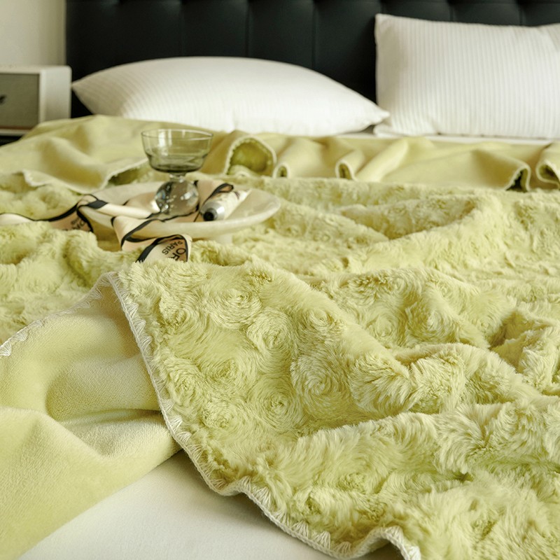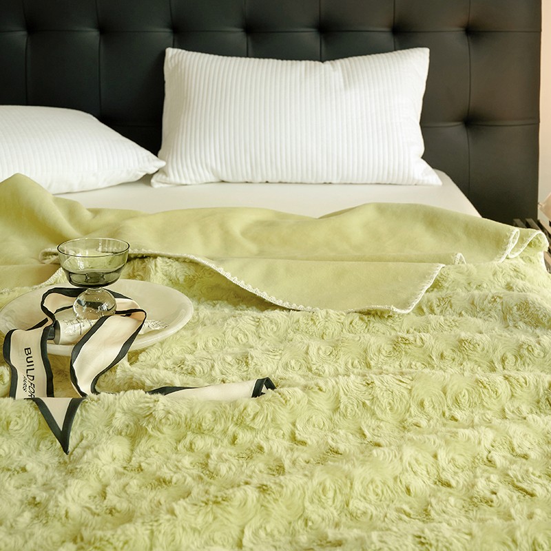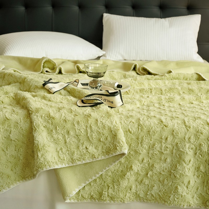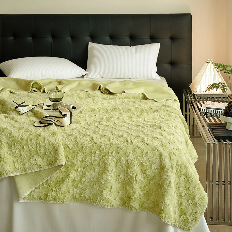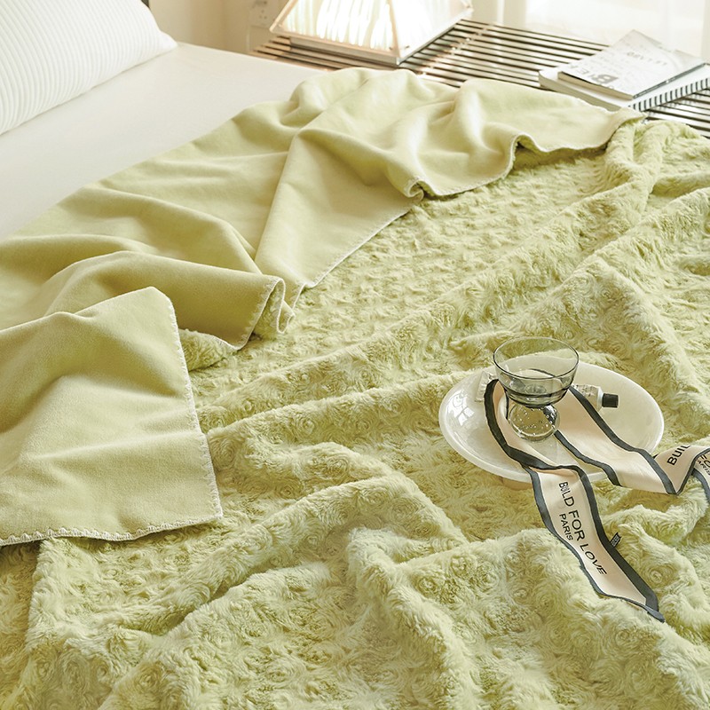 寐居家纺 2023新款兔兔绒玫瑰多功能毛毯 兔绒玫瑰-果绿
