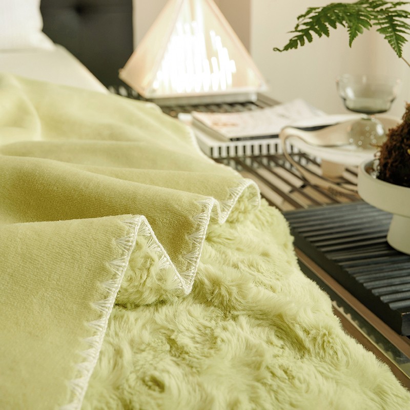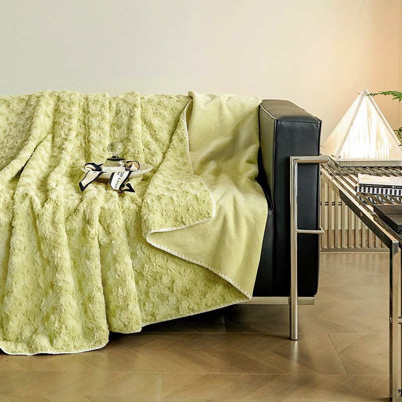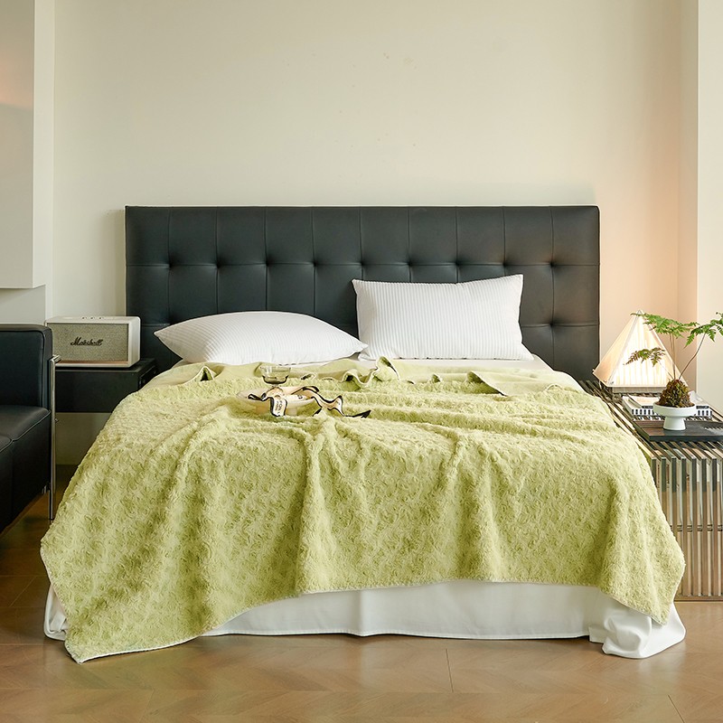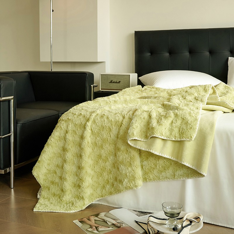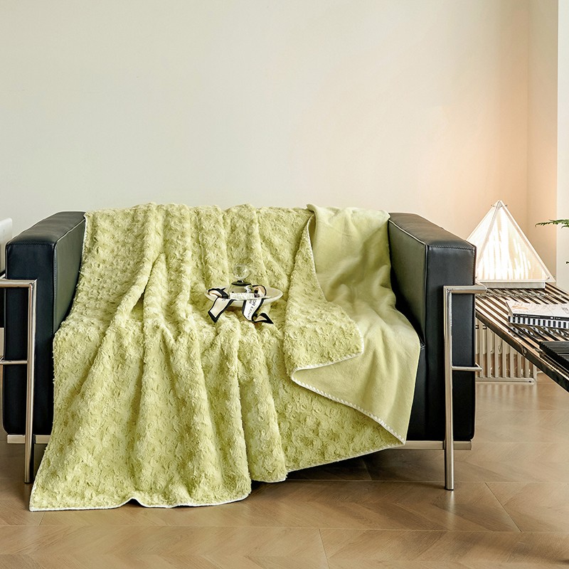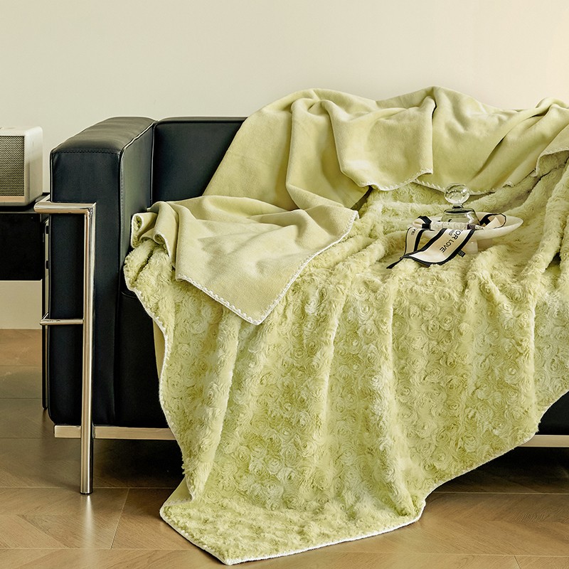 寐居家纺 2023新款兔兔绒玫瑰多功能毛毯 兔绒玫瑰-果绿