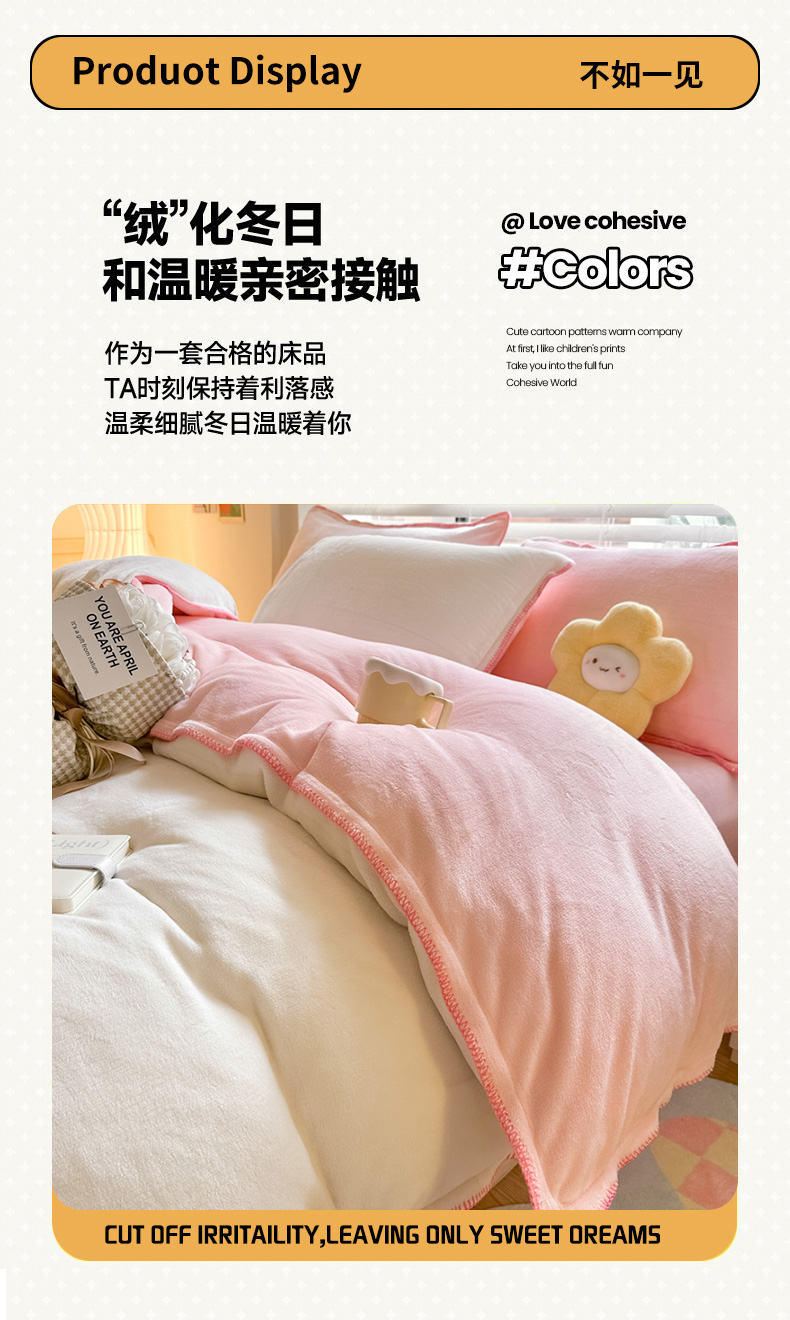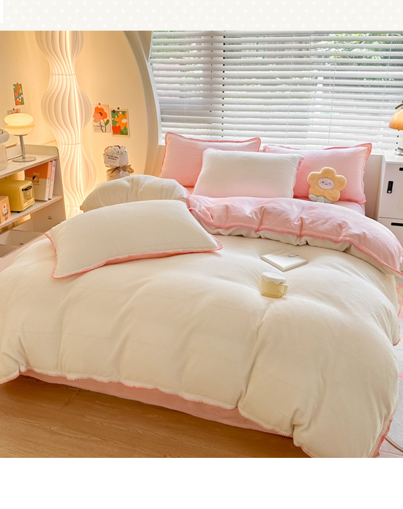当前位置: 91家纺网 > 商品网购 > 床品套件 > 四件套 > 牛奶绒四件套 > 安哆啦 2024新款高克重牛奶绒混搭四件套 白拼粉