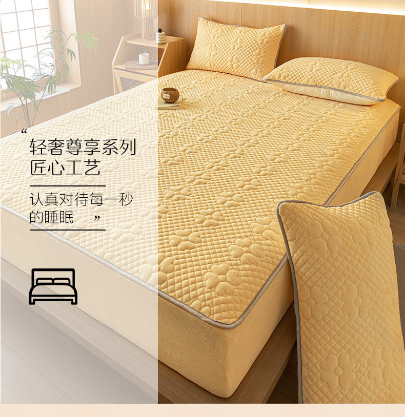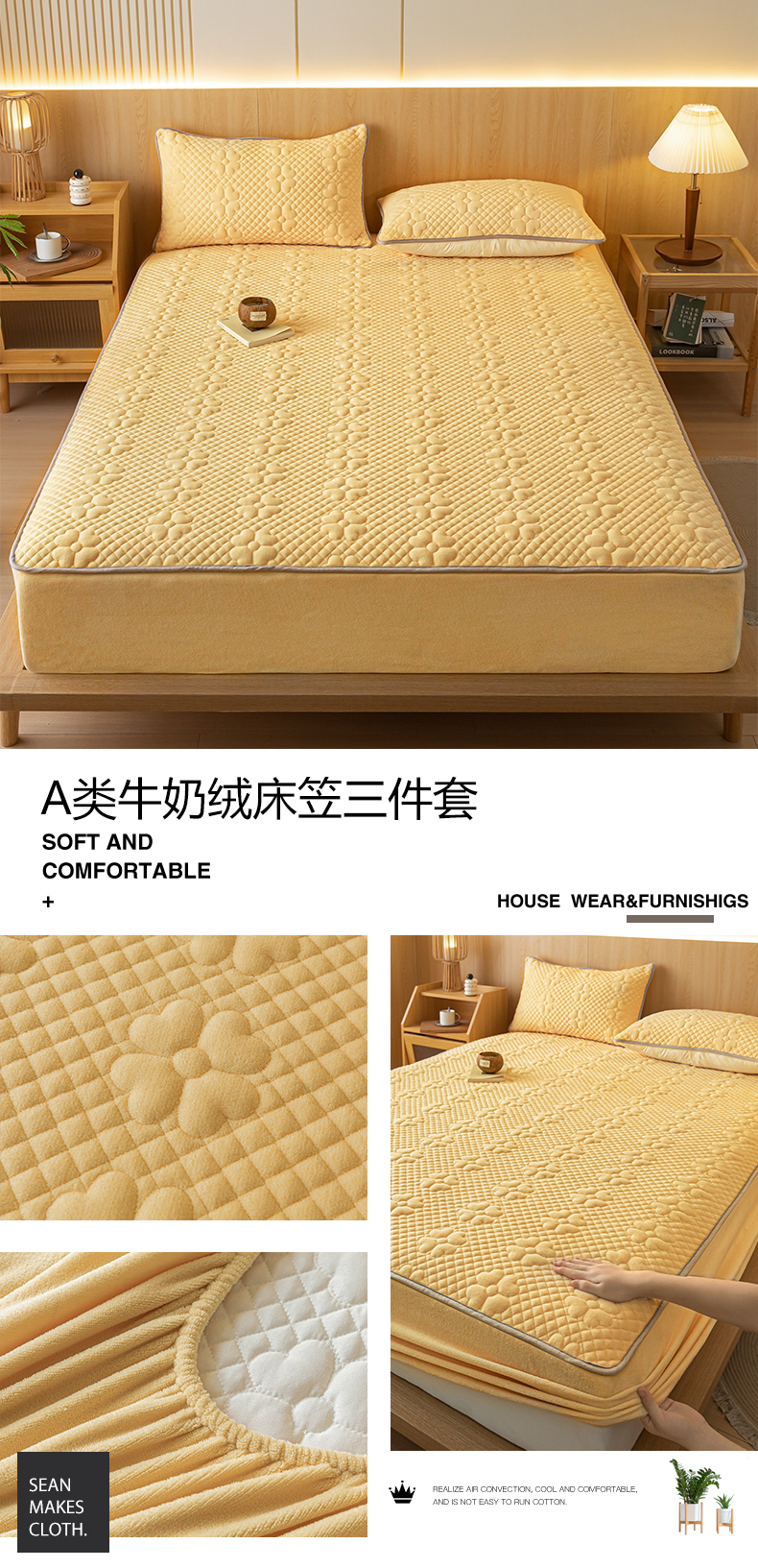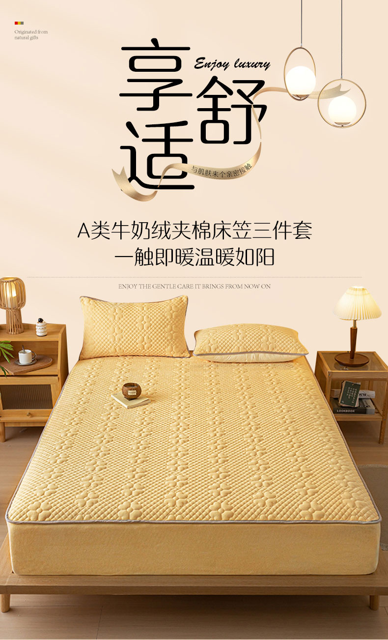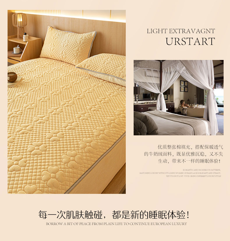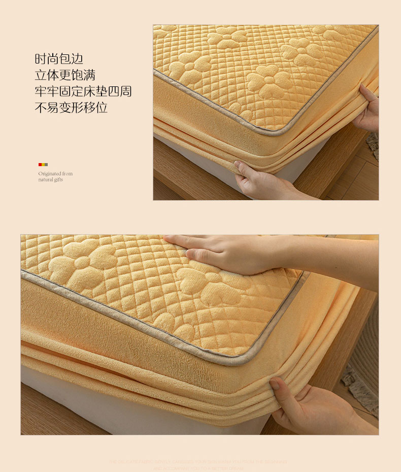 给笠 2023新款A类夹棉牛奶绒床笠三件套 花漫系列 牛奶绒-花漫奶黄