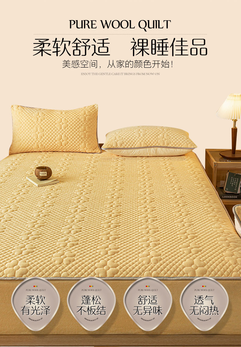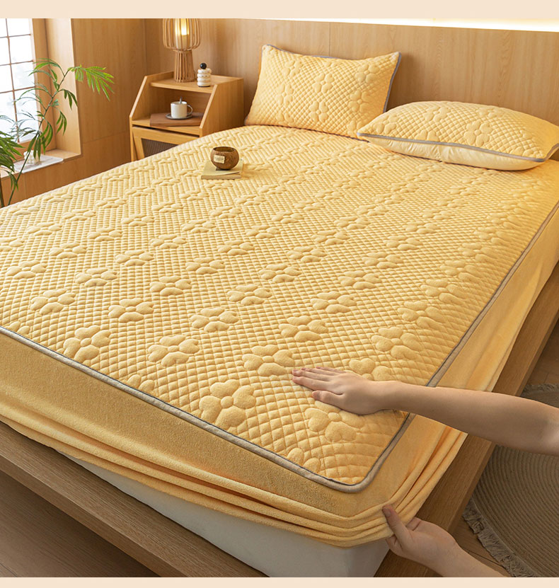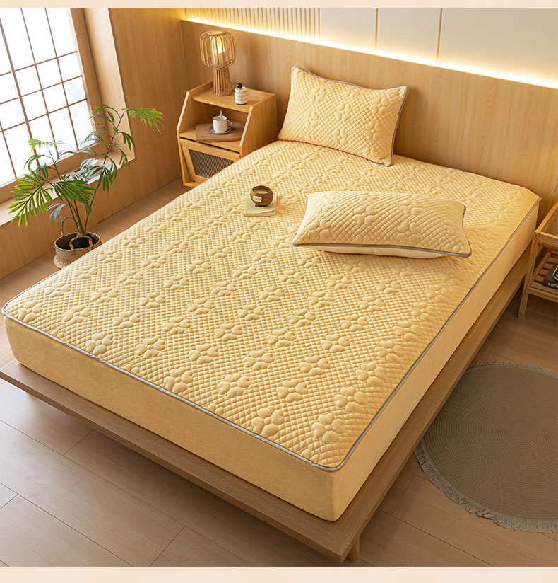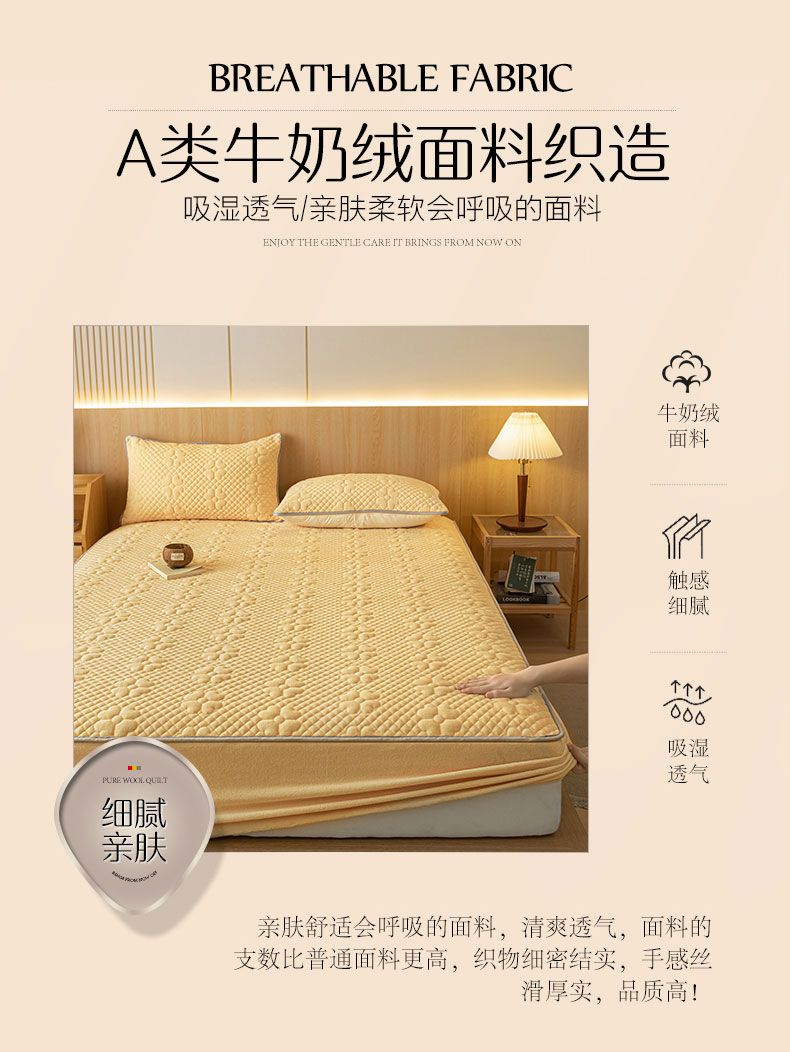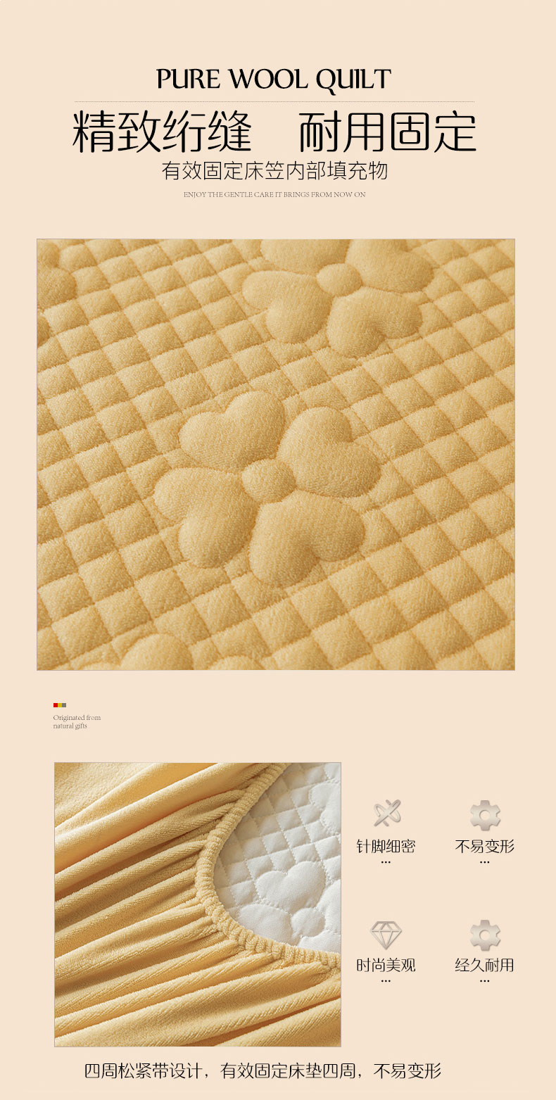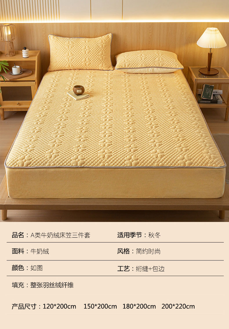 给笠 2023新款A类夹棉牛奶绒床笠三件套 花漫系列 牛奶绒-花漫奶黄