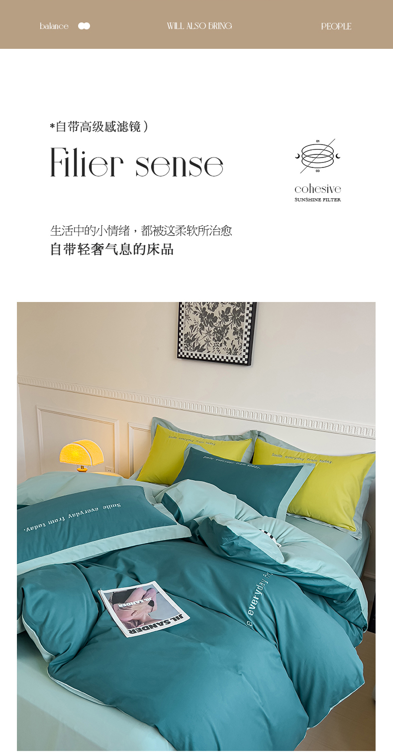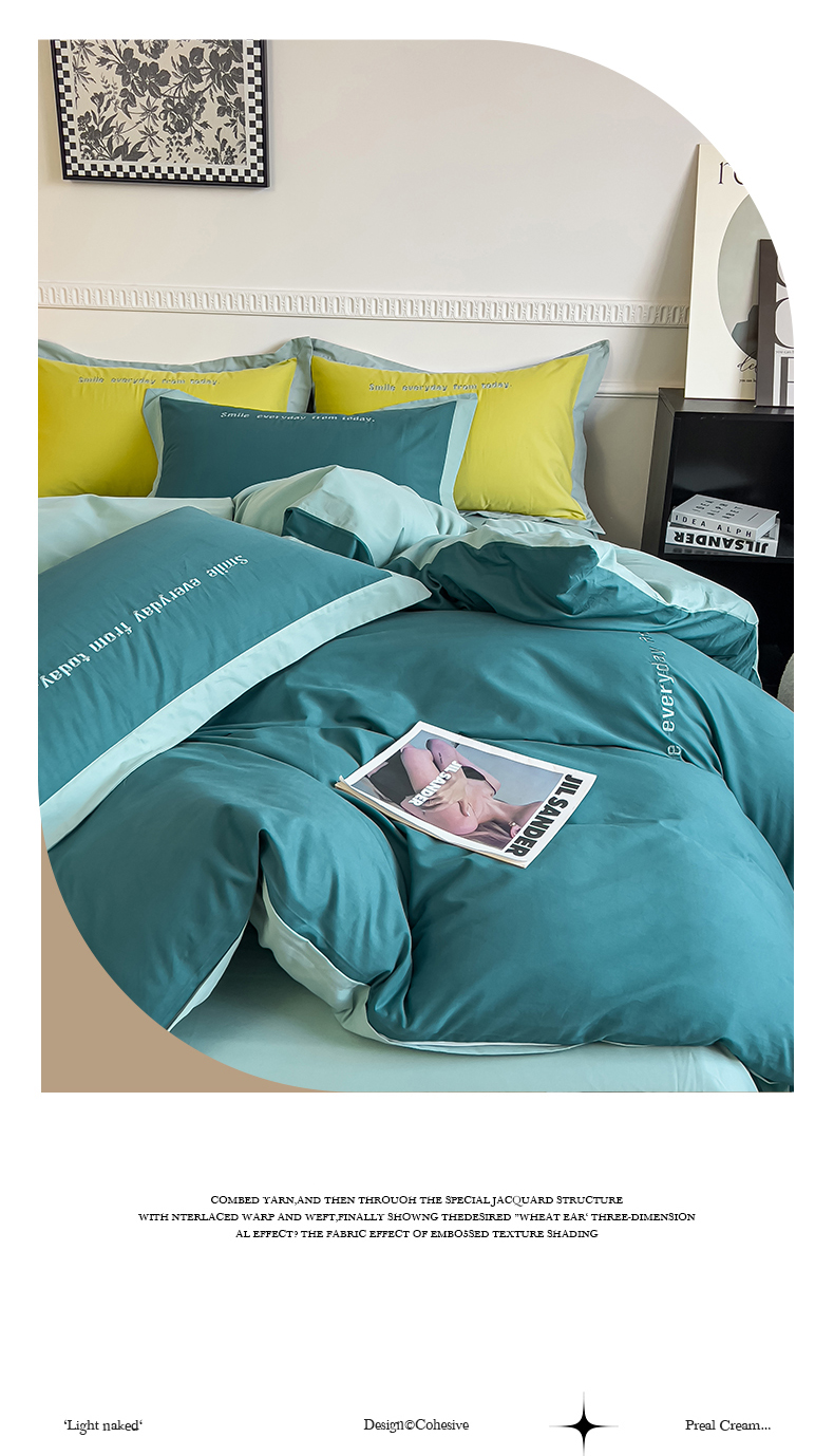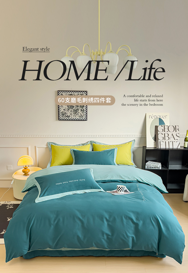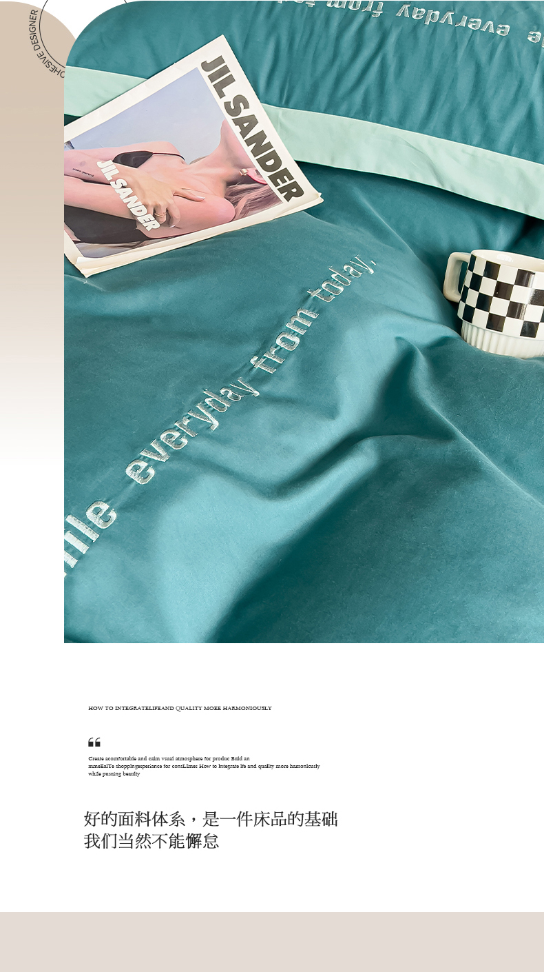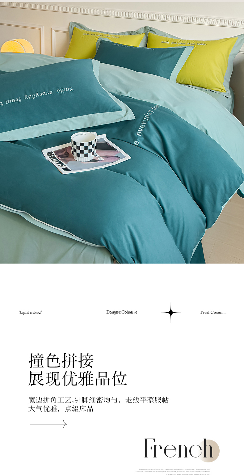 (总)嘉汀兰 2023新款60支全棉磨毛绣花撞色轻奢四件套—暮里,粉色,红灰色,芥绿色,浅灰色,深青色