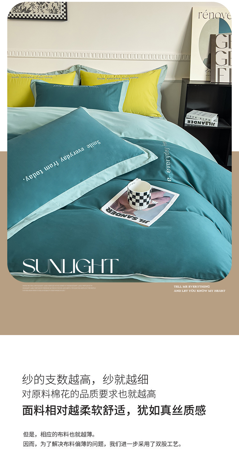 (总)嘉汀兰家居 2024新款100S长绒棉数码印花四件套系列,陌上花开-绿,纤羽-蓝