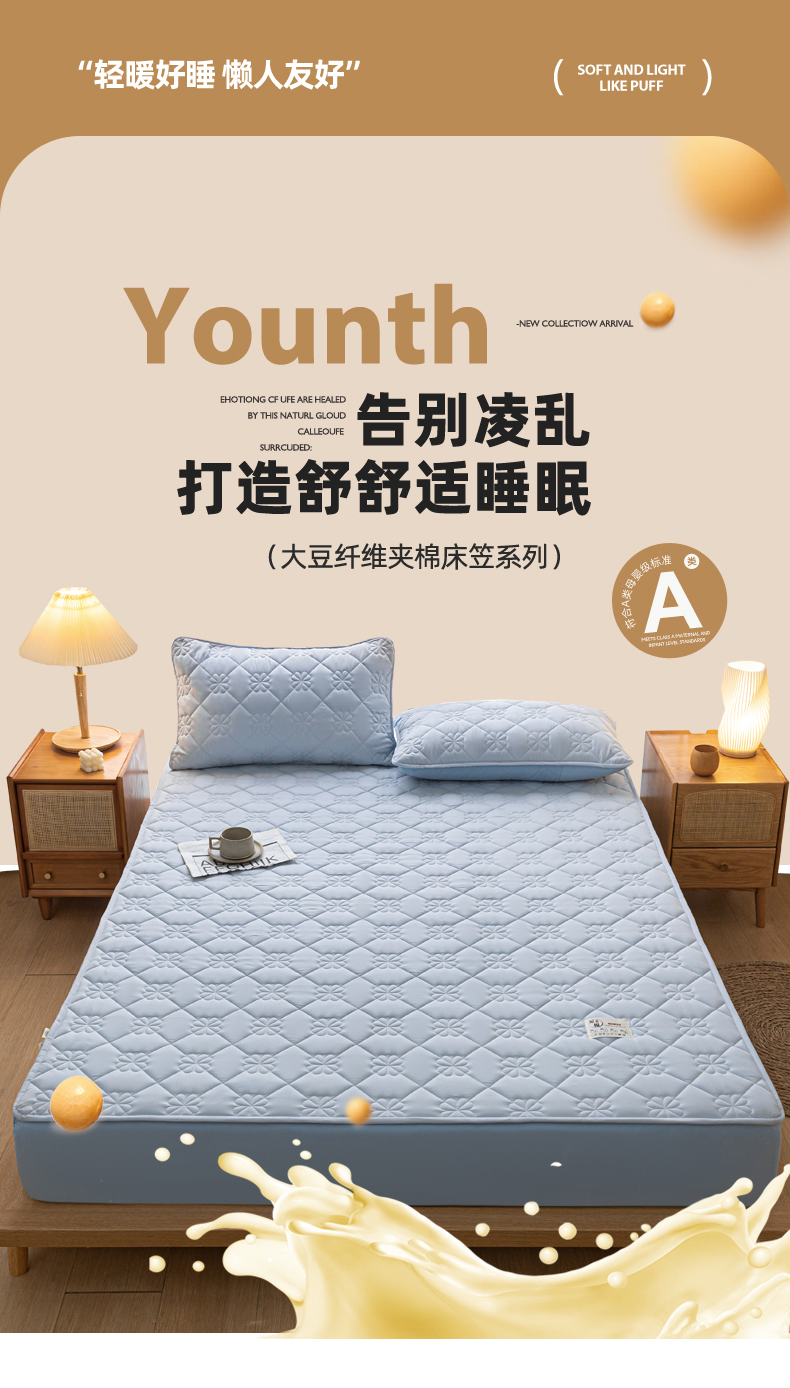 (总)米粒家纺 2023新款A类大豆纤维夹棉床笠系列,格调-白,格调-粉,格调-卡其,格调-蓝,格调-浅灰,格调-深灰,幸运花-白,幸运花-粉,幸运花-卡其,幸运花-蓝,幸运花-浅灰,幸运花-深灰
