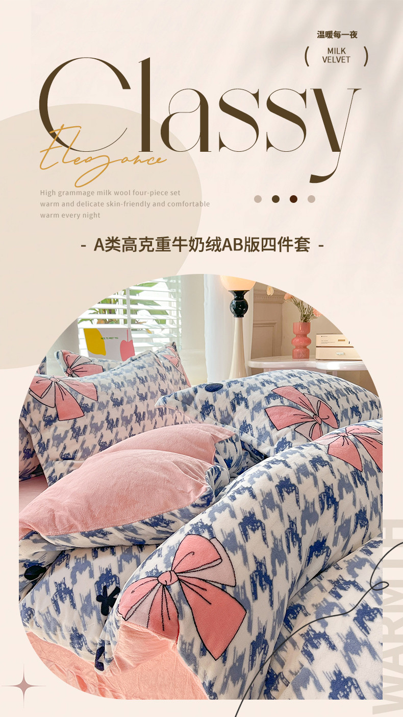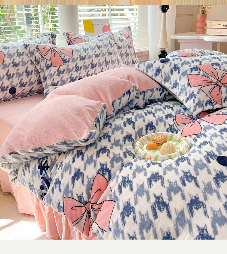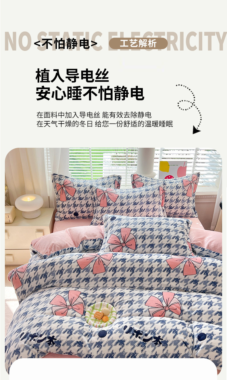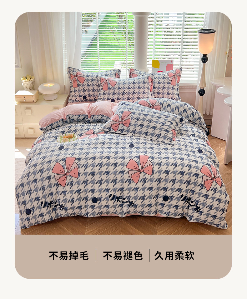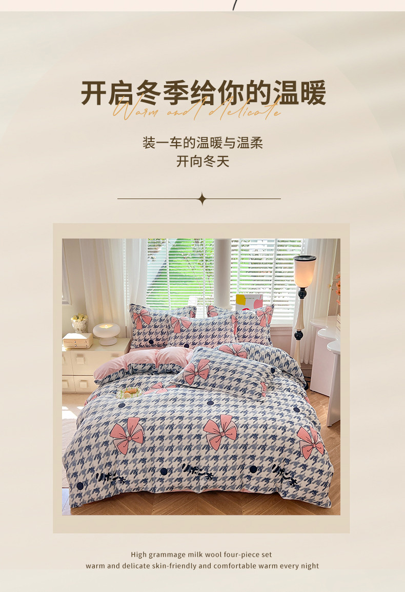 当前位置: 91家纺网 > 商品网购 > 床品套件 > 四件套 > 牛奶绒四件套 > 妖妖家纺 2023新款牛奶绒四件套 千鸟蝴蝶结