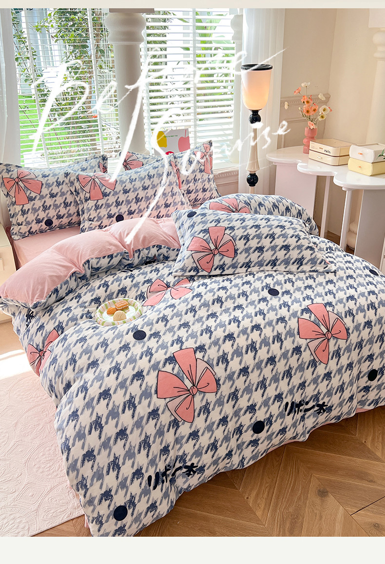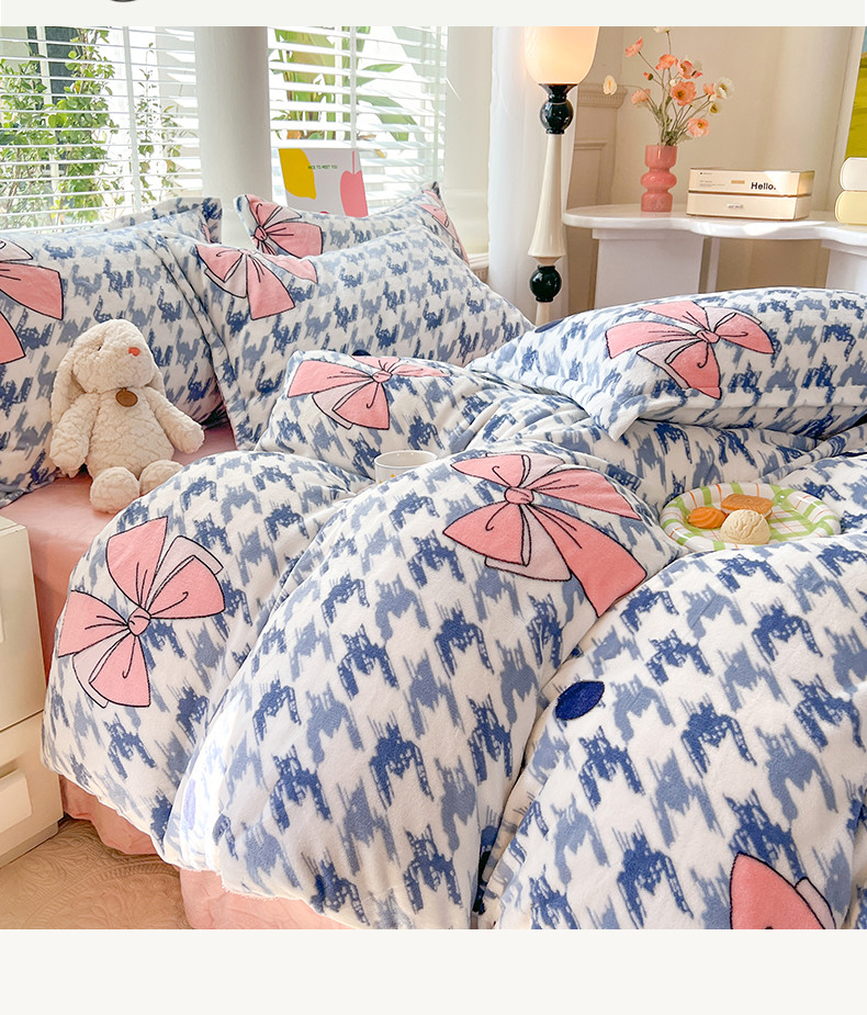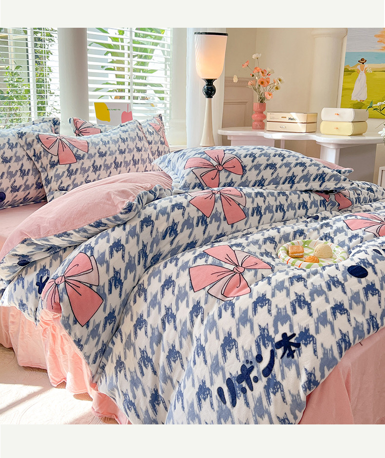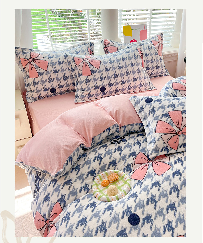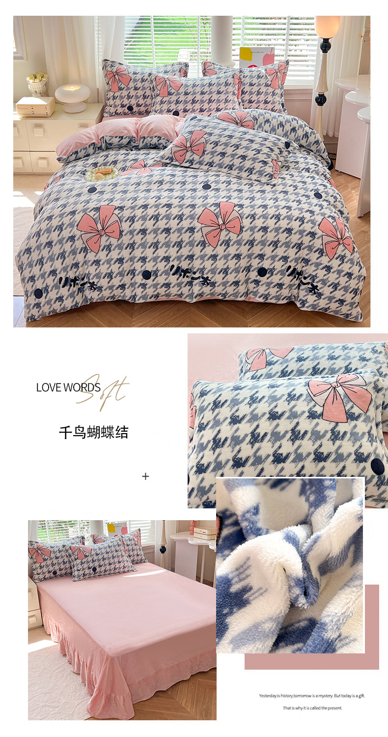 当前位置: 91家纺网 > 商品网购 > 床品套件 > 四件套 > 牛奶绒四件套 > 妖妖家纺 2023新款牛奶绒四件套 千鸟蝴蝶结