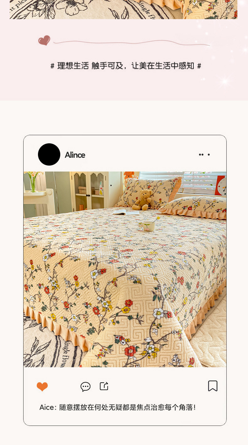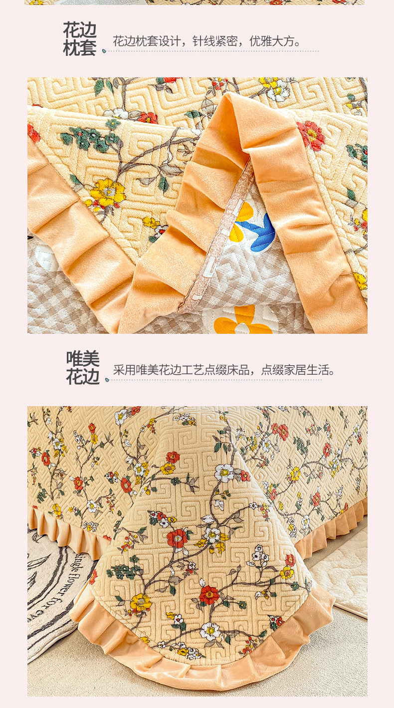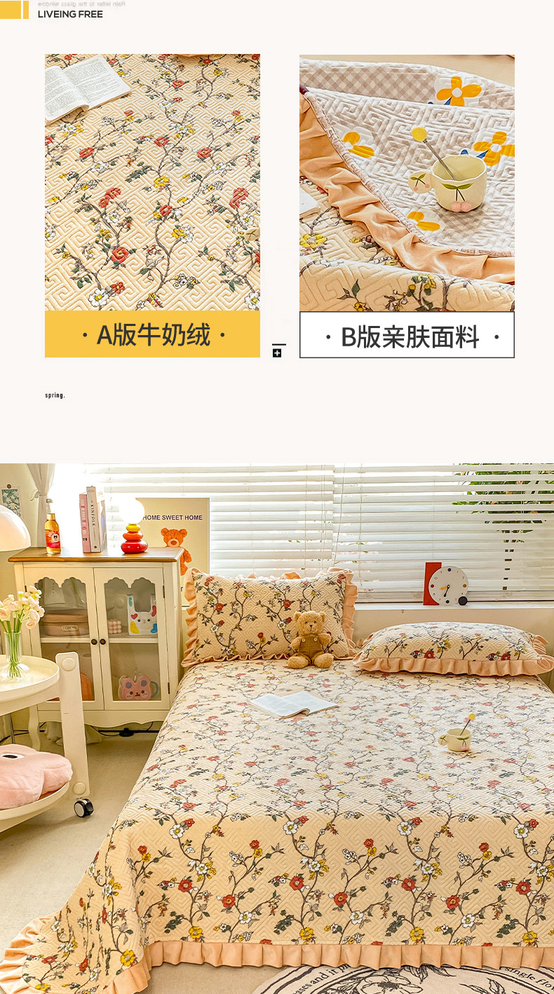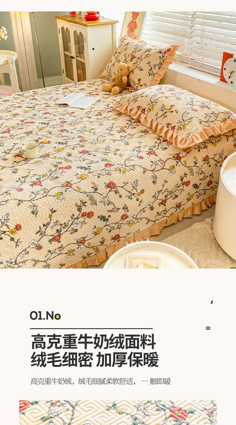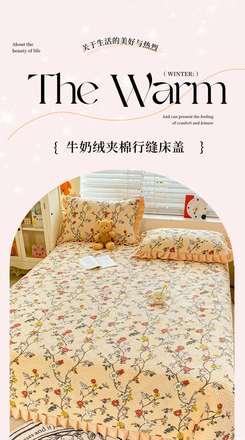 • 91家纺网 家纺一手货源 找家纺 慕木  2025新款A类小清新加厚多功能牛奶绒夹棉床盖 花语