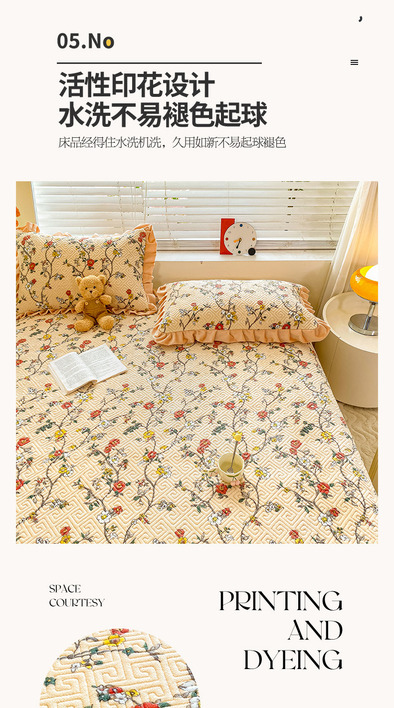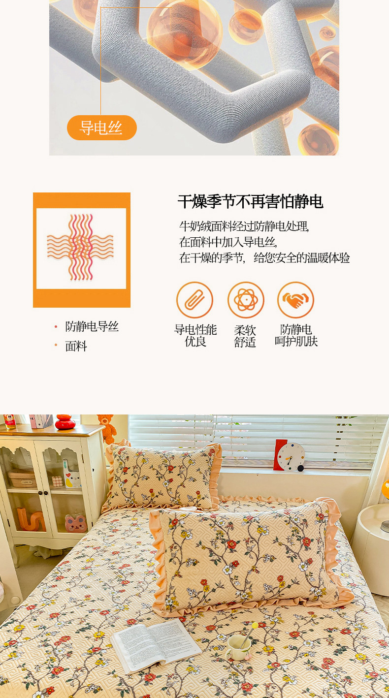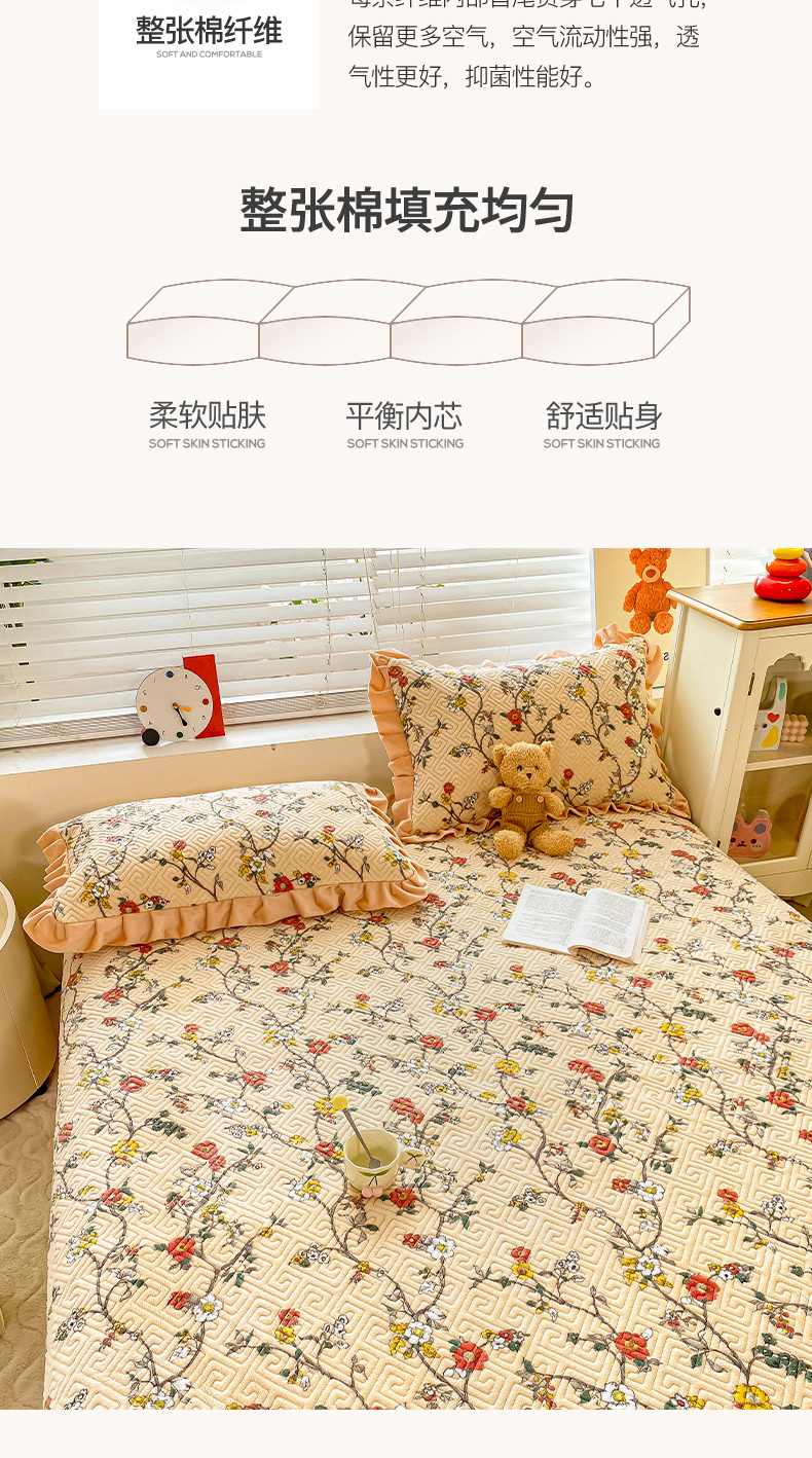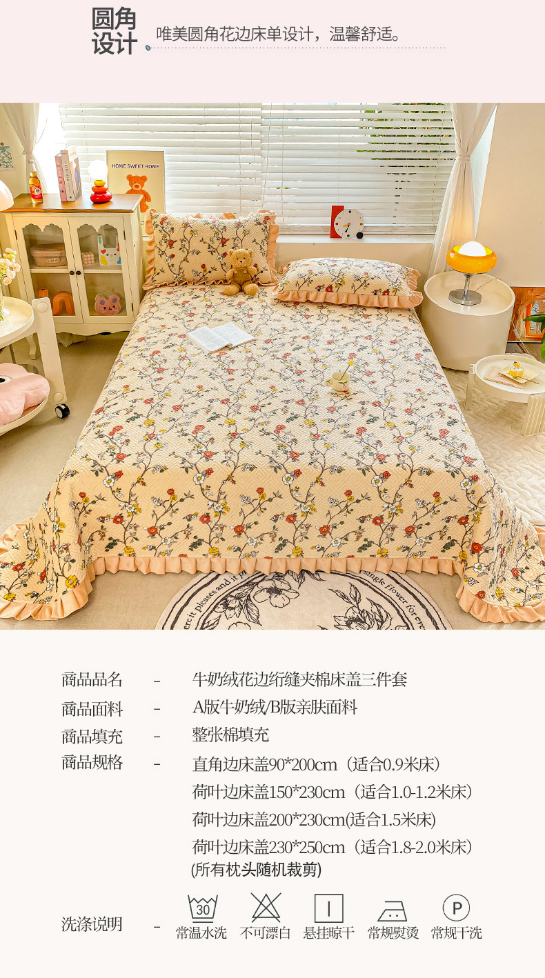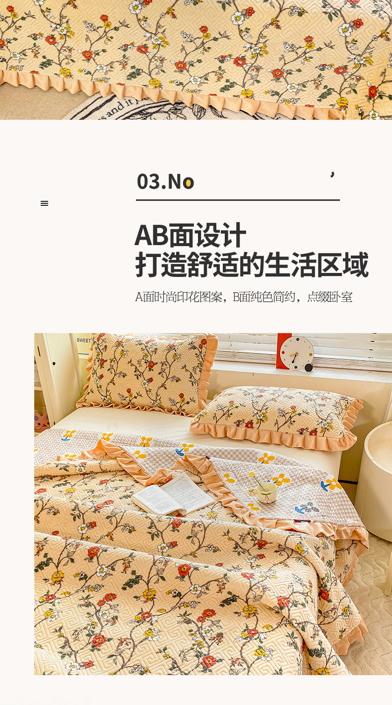 • 91家纺网 家纺一手货源 找家纺 慕木  2025新款A类小清新加厚多功能牛奶绒夹棉床盖 花语