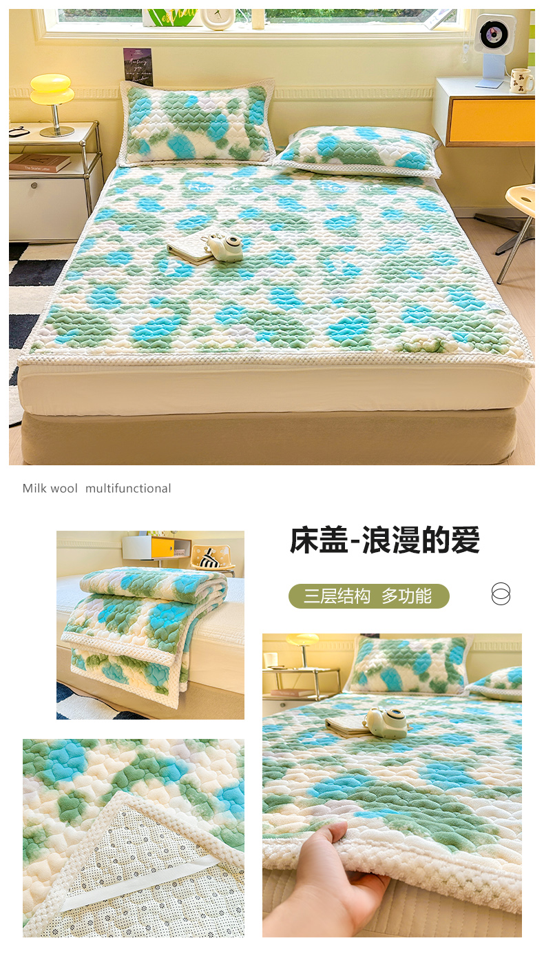 商品名称:宜代光年 2023新款牛奶绒夹棉床垫床盖 床盖-浪漫的爱