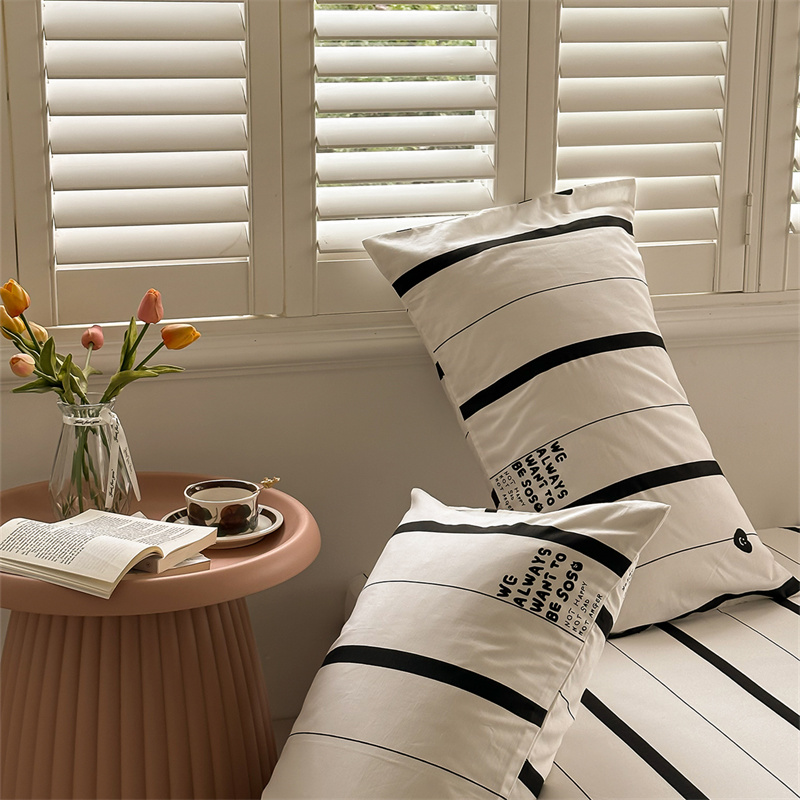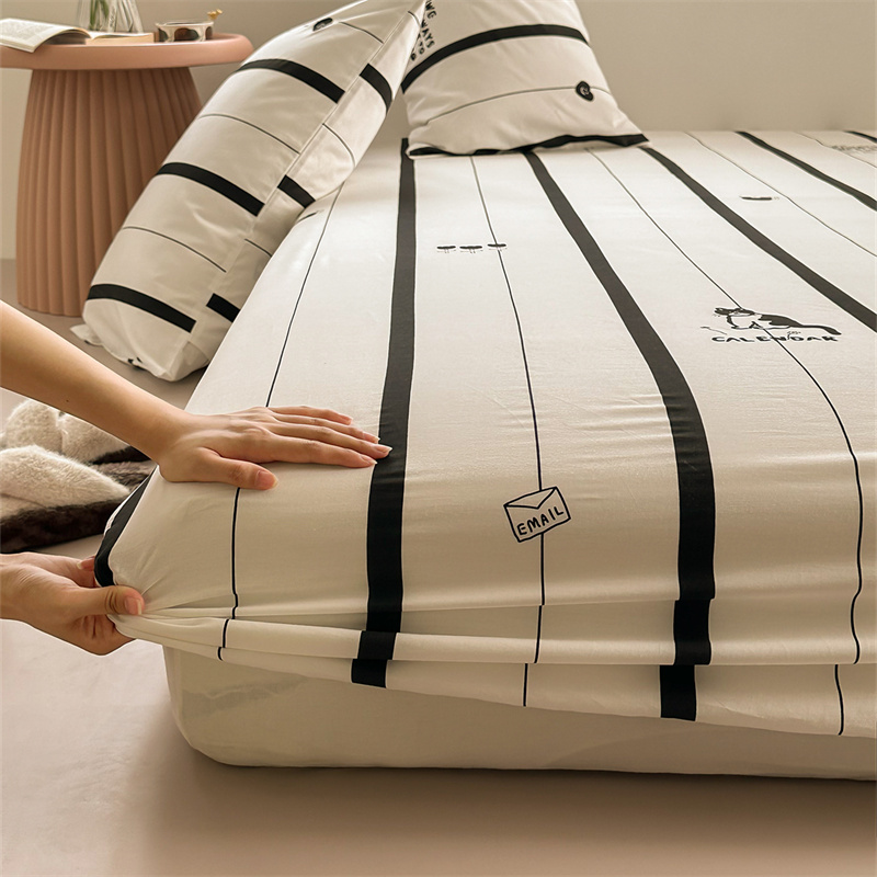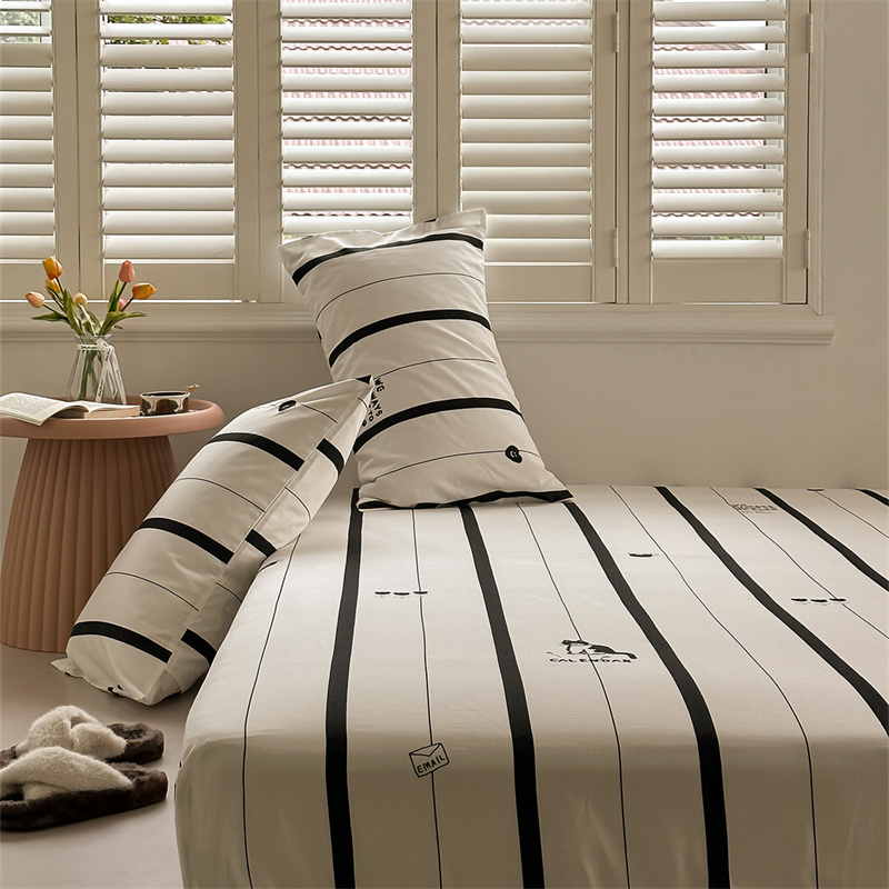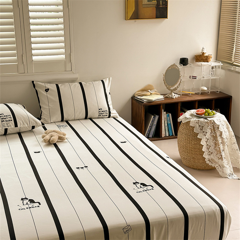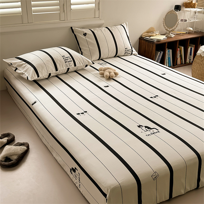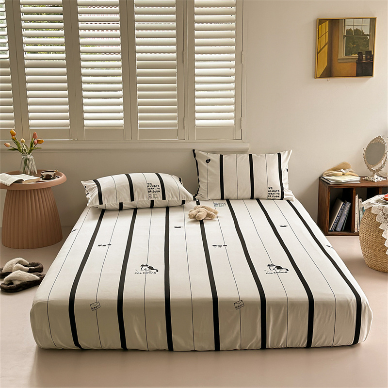 洋铭区 2023新款全棉单品床笠条纹小猫
