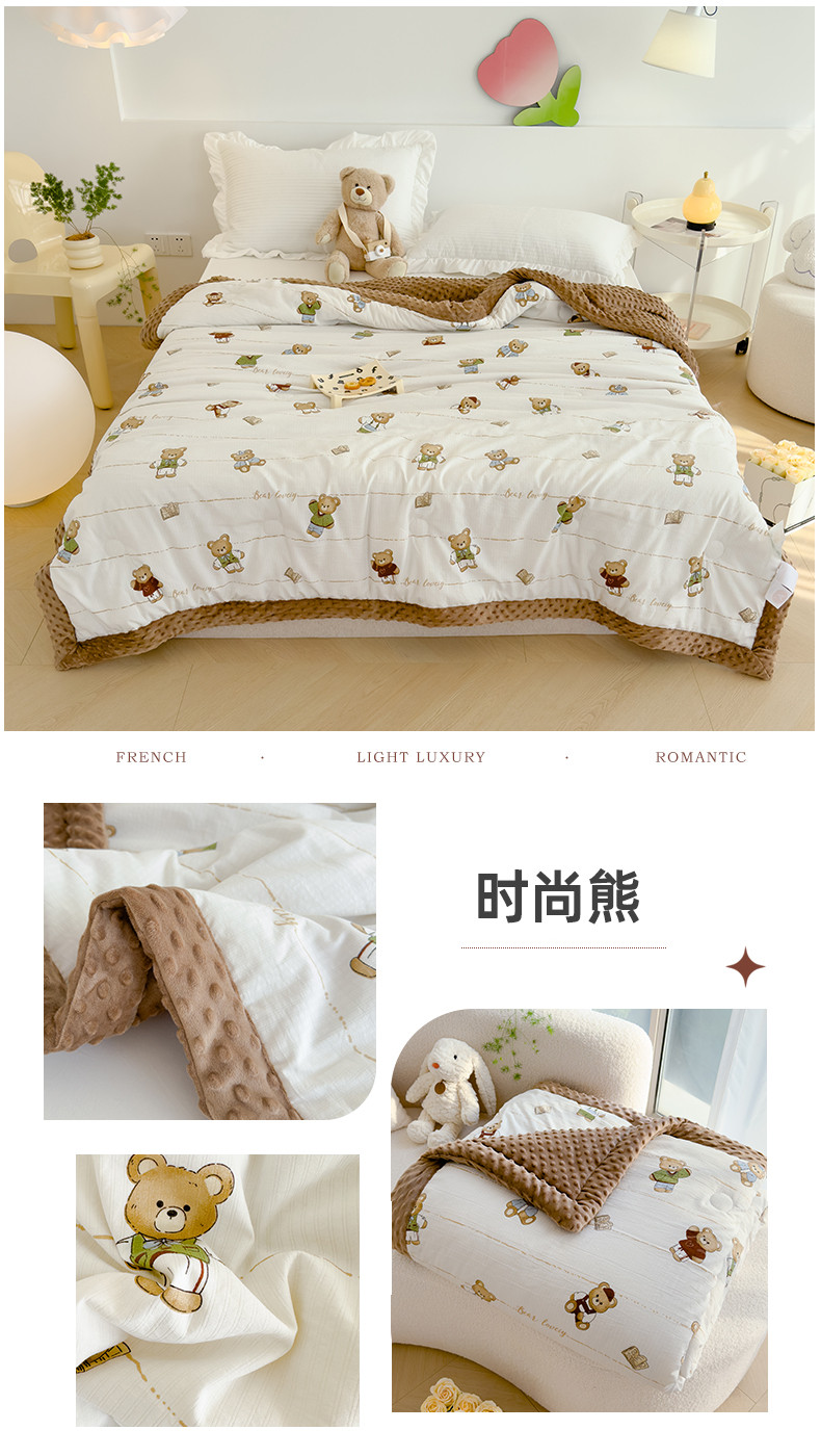 (总)芯恋家居 2025新款小香风A类母婴级全棉双层纱宝宝绒豆豆被保暖四季被,小香织带熊-粉灰,小香织带熊-奶白绿,小香织带熊-雾霾灰,小香织带熊-浅紫灰,小香织带熊-蓝灰,小香织带熊-奶白蓝,小香织带熊-奶白咖,小香织带熊-奶白粉