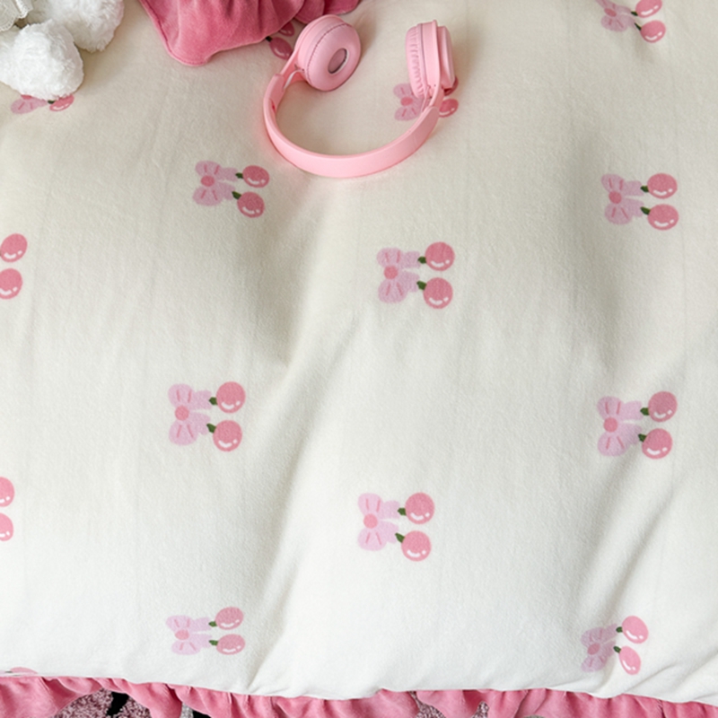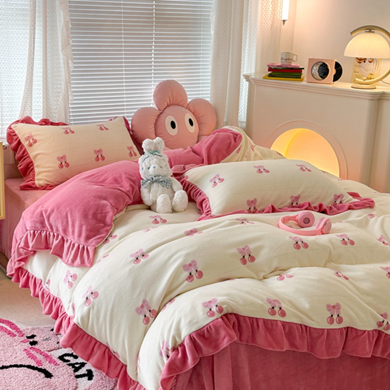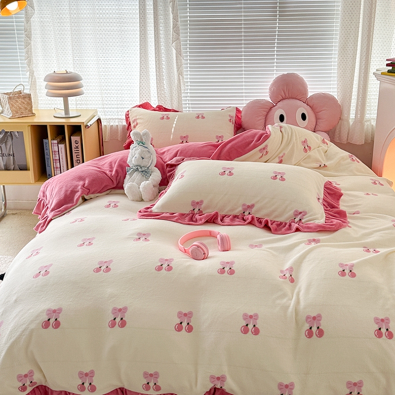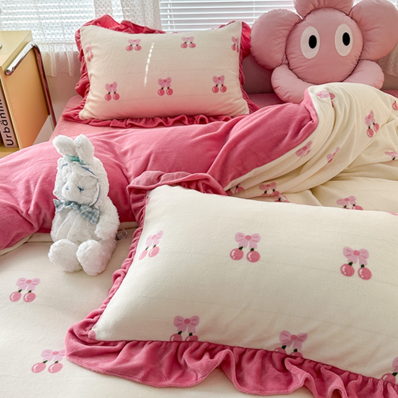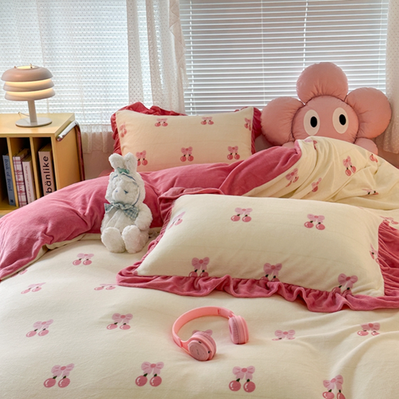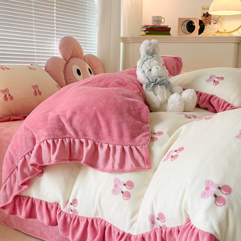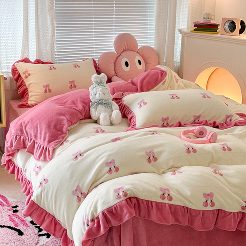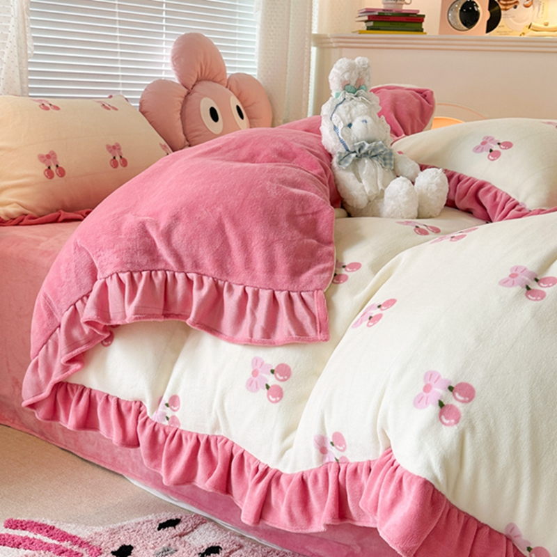昔可家纺 2023新款花边款牛奶绒四件套 一口樱桃