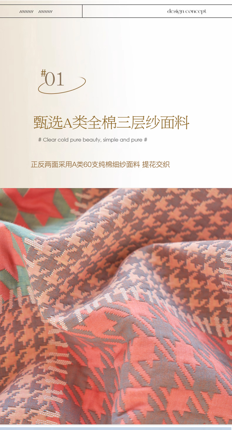 (总)棠薇家纺 2025新款爆款60S长绒棉厚百福字三层纱布毯 200x230cm 厚款60S百福毯,百福毯厚款