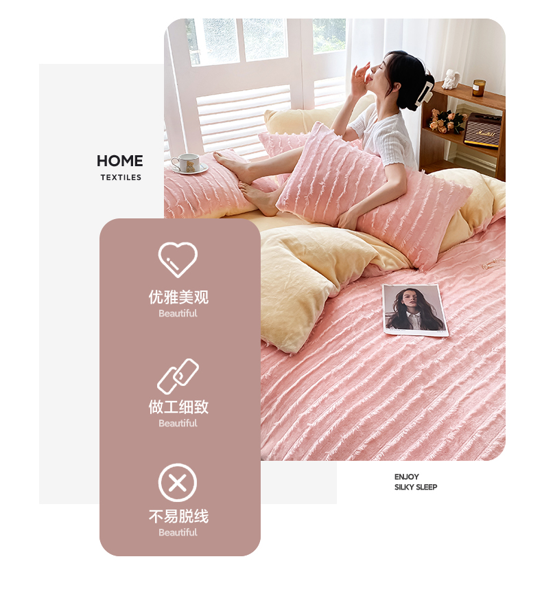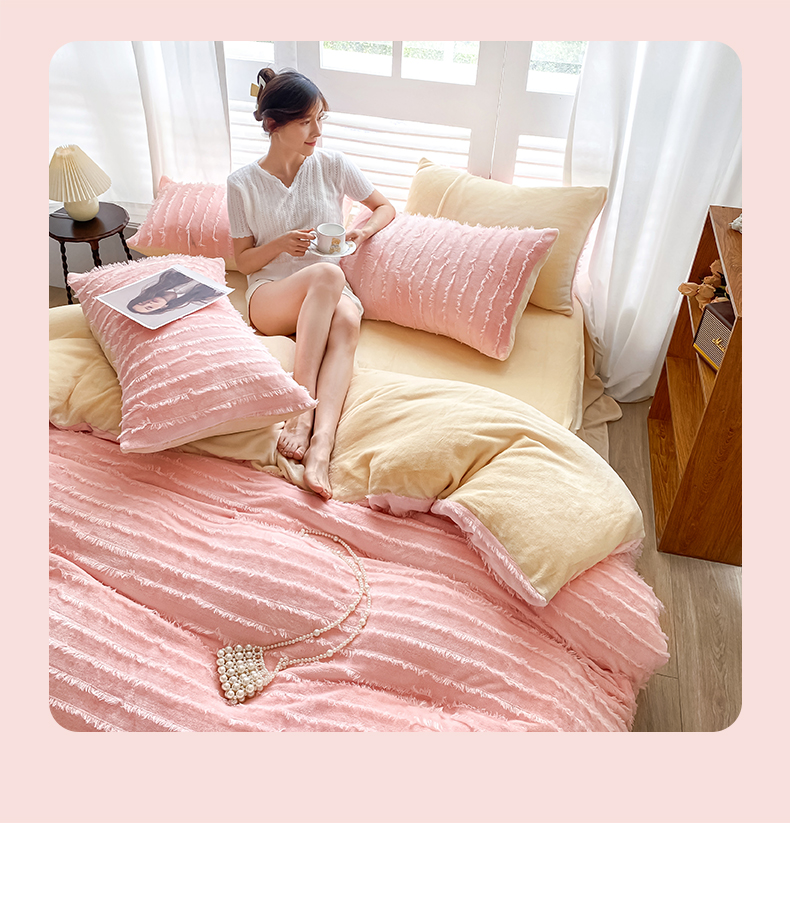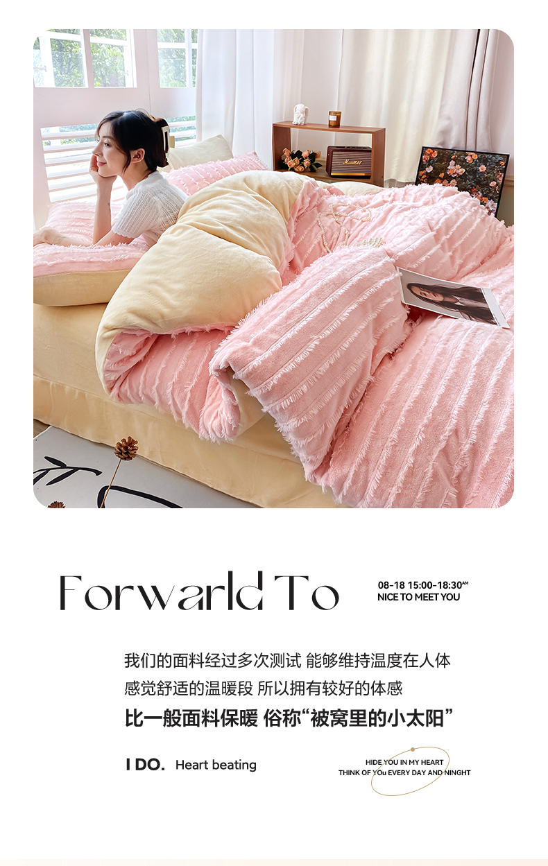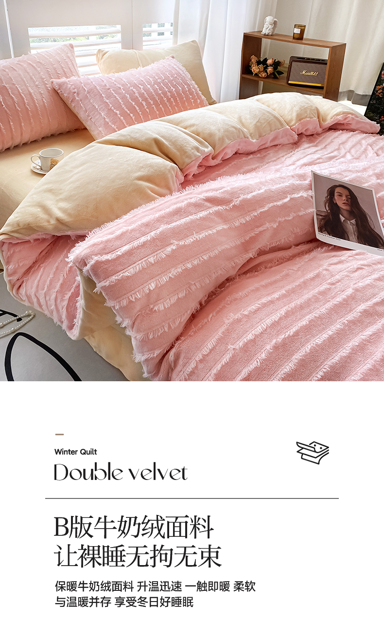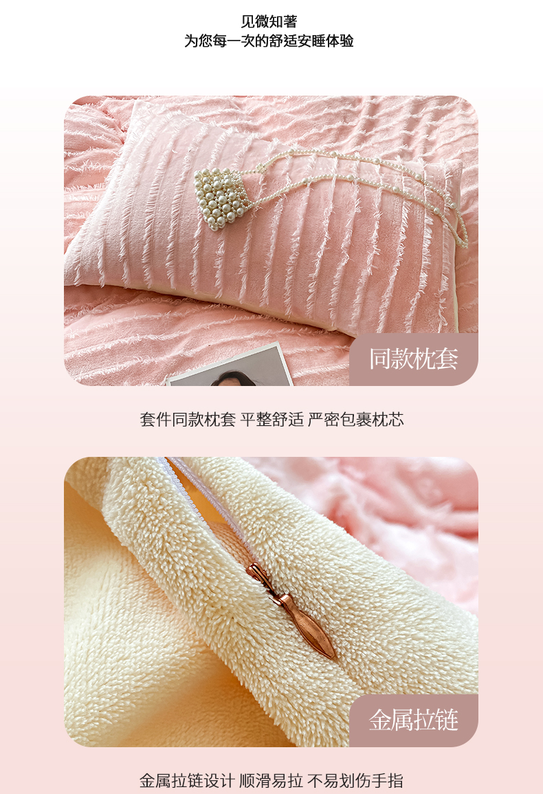 当前位置: 91家纺网 > 商品网购 > 床品套件 > 四件套 > 牛奶绒四件套 > 吾诺家居 2023新款保暖流苏绒牛奶绒四件套 流苏浅粉