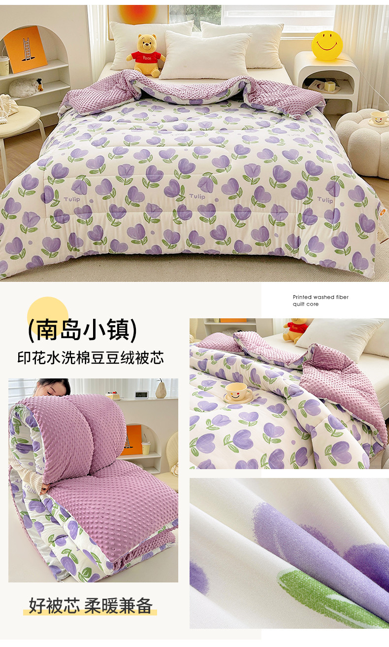 商品名称:中国龙家纺 2023新款A类水洗棉豆豆绒加厚冬被 南岛小镇