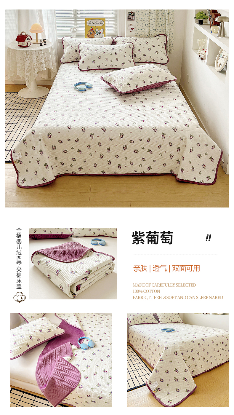 商品名称:(总)梦精灵 2025新款棉加绒床盖全棉学生床夹棉床盖双面可用纯棉床单(棉加绒枕套)