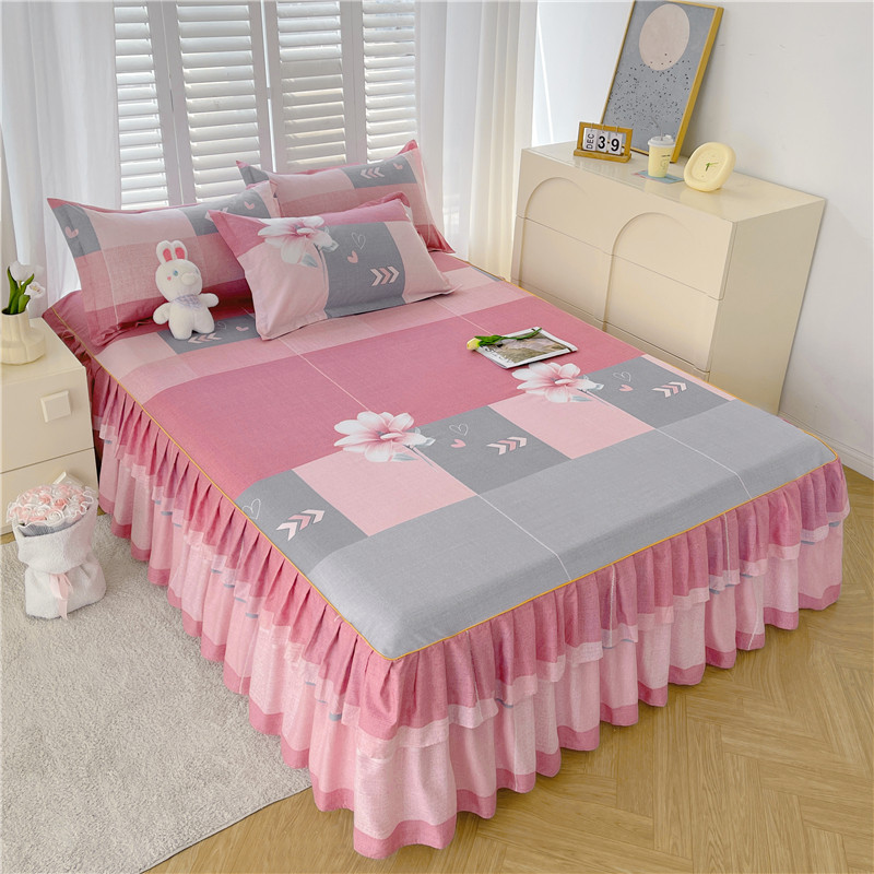 优家居 2025新款芦荟棉双层边韩版公主风花边三件套外贸直播爆款 花仙子