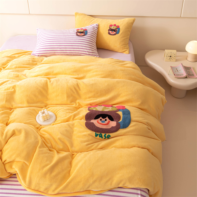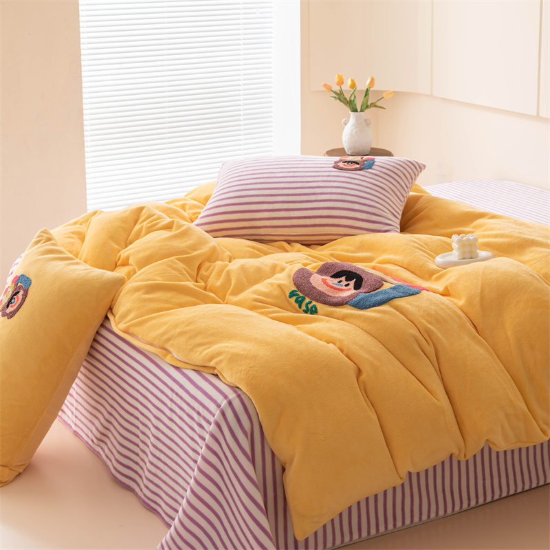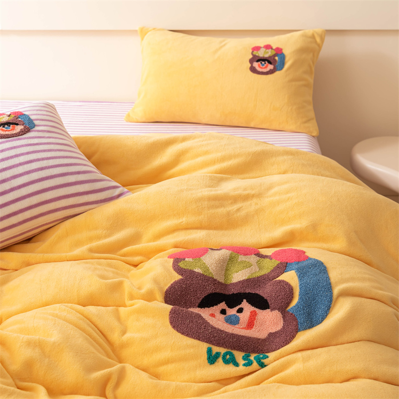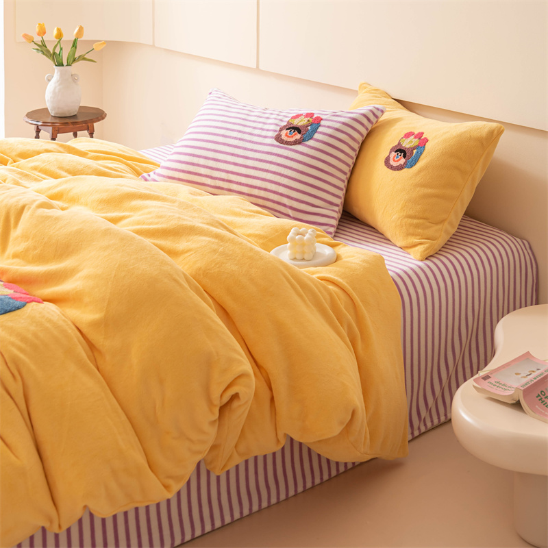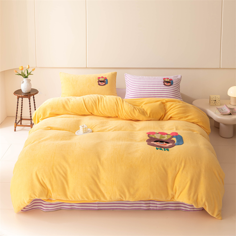 洋铭区(原狠狠爱) 2023新款AB版牛奶绒四件套-元气满满系列 元气满满姜黄