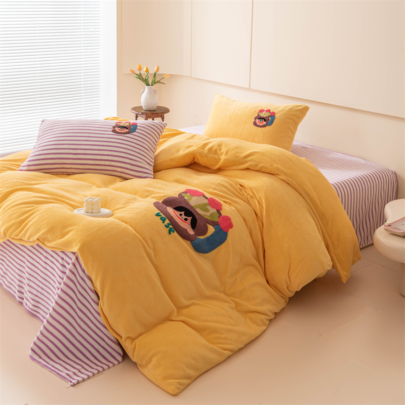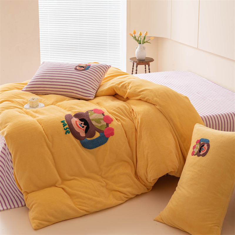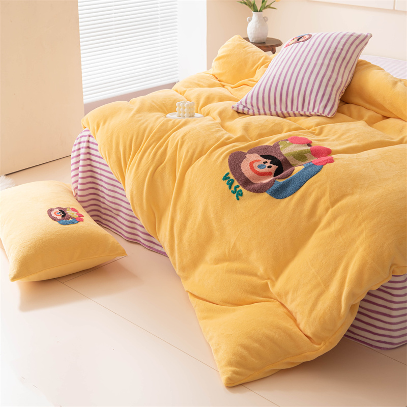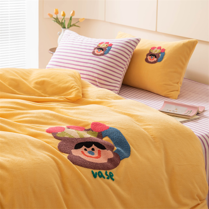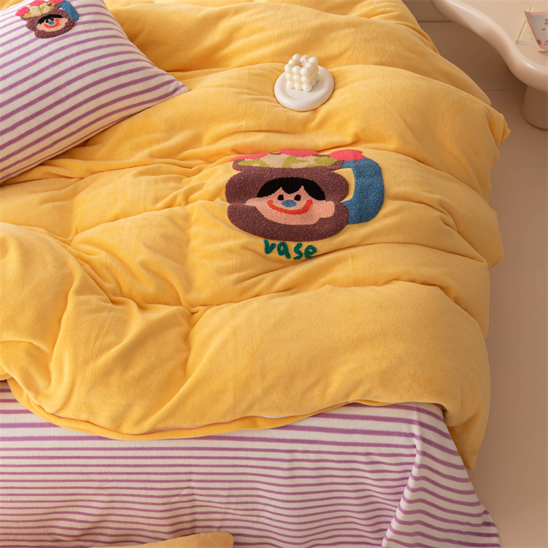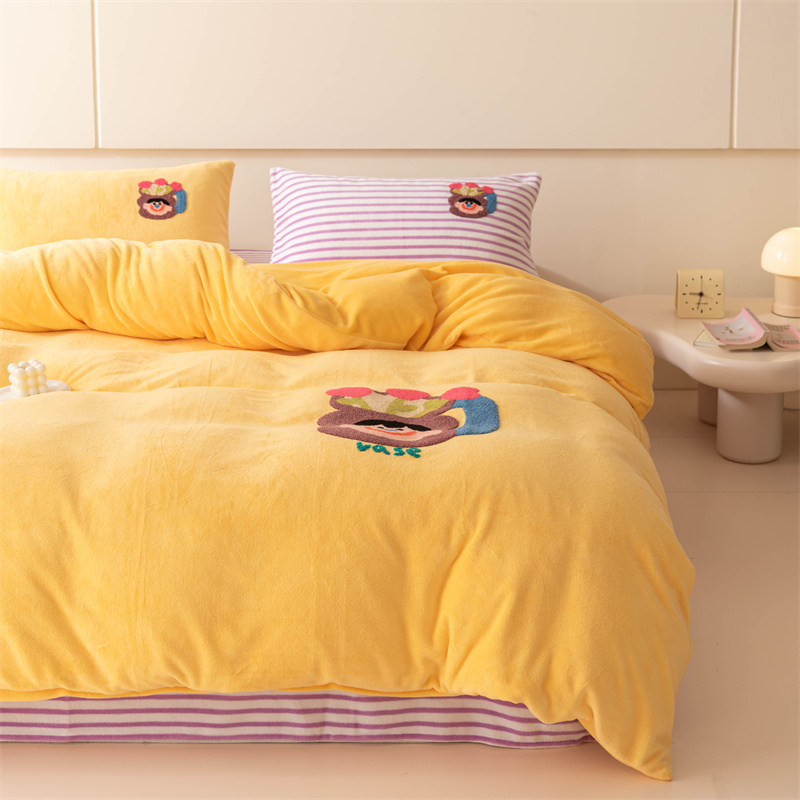 洋铭区(原狠狠爱) 2023新款AB版牛奶绒四件套-元气满满系列 元气满满姜黄