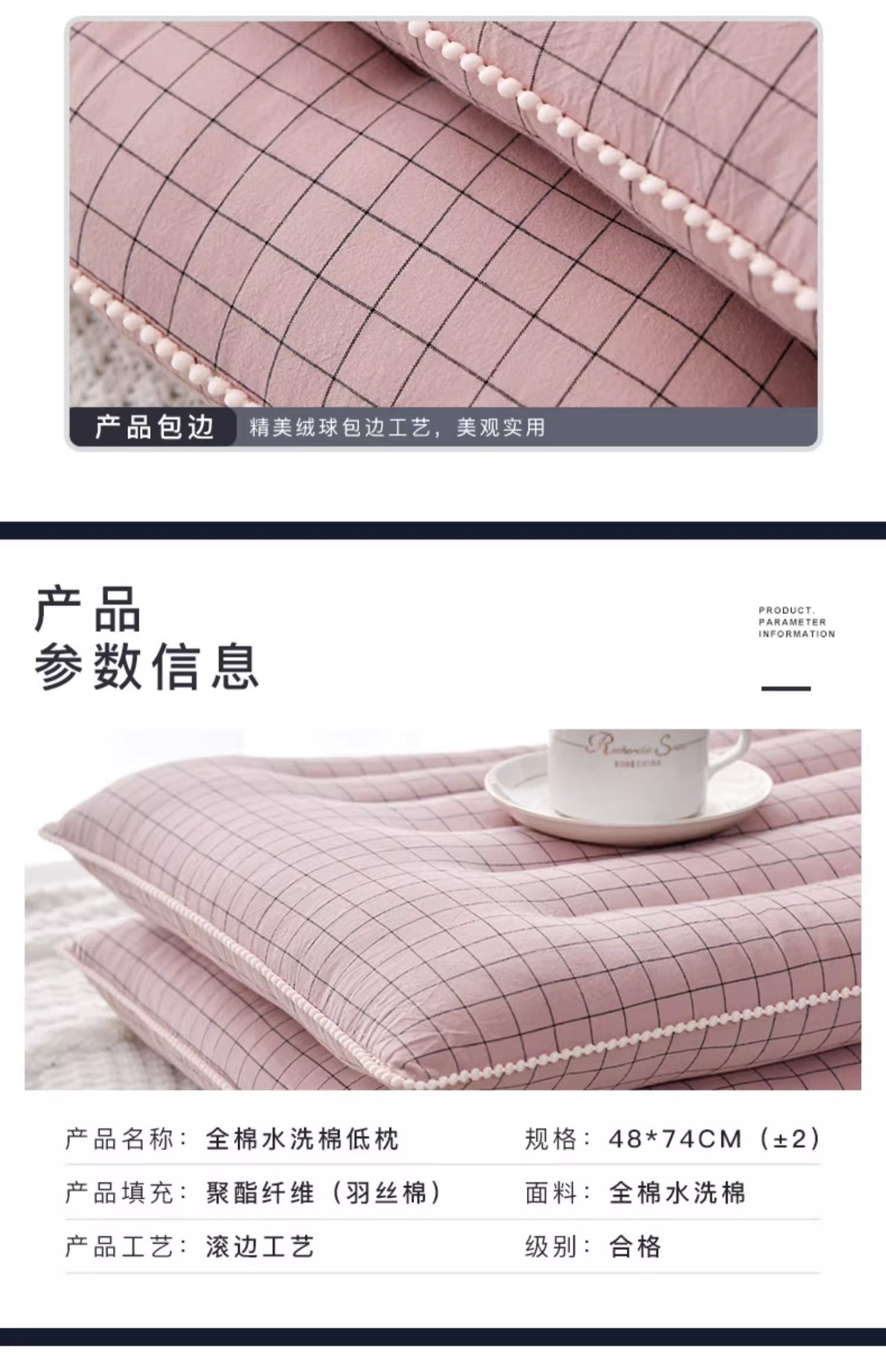 凡星枕业 2023新款格子低枕护颈椎助睡眠枕头枕芯低枕
