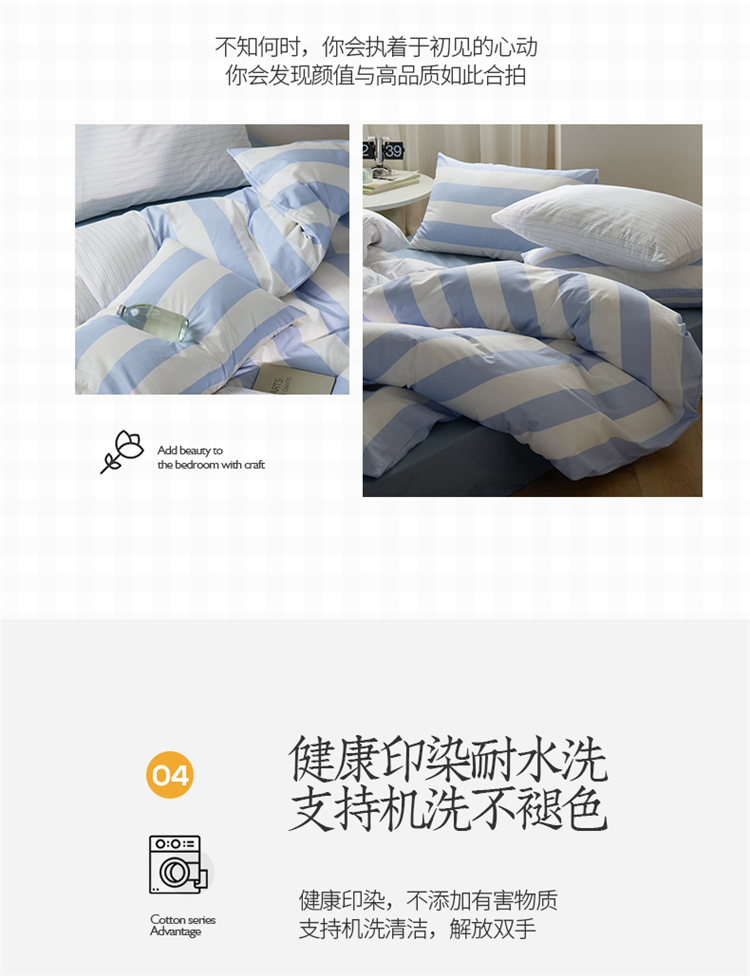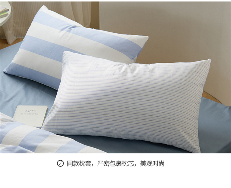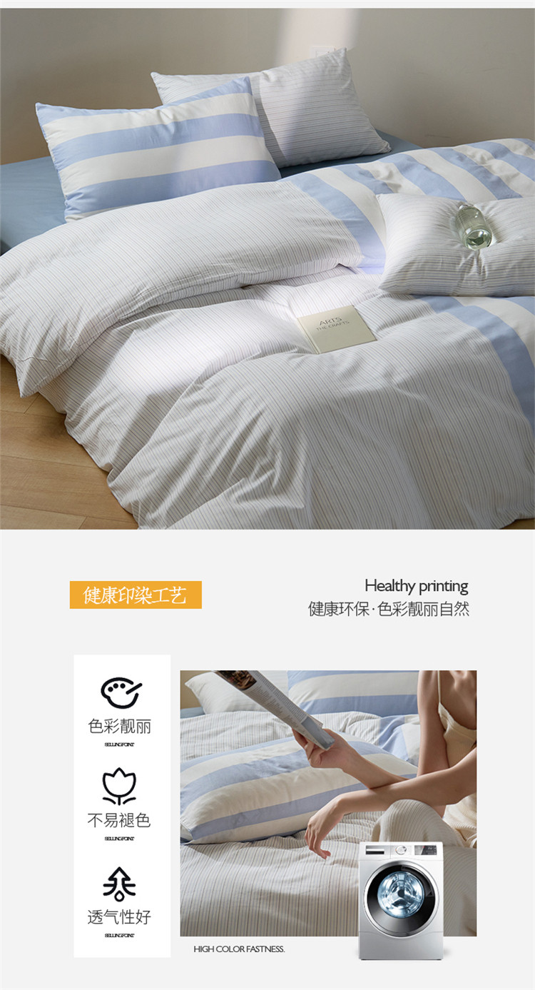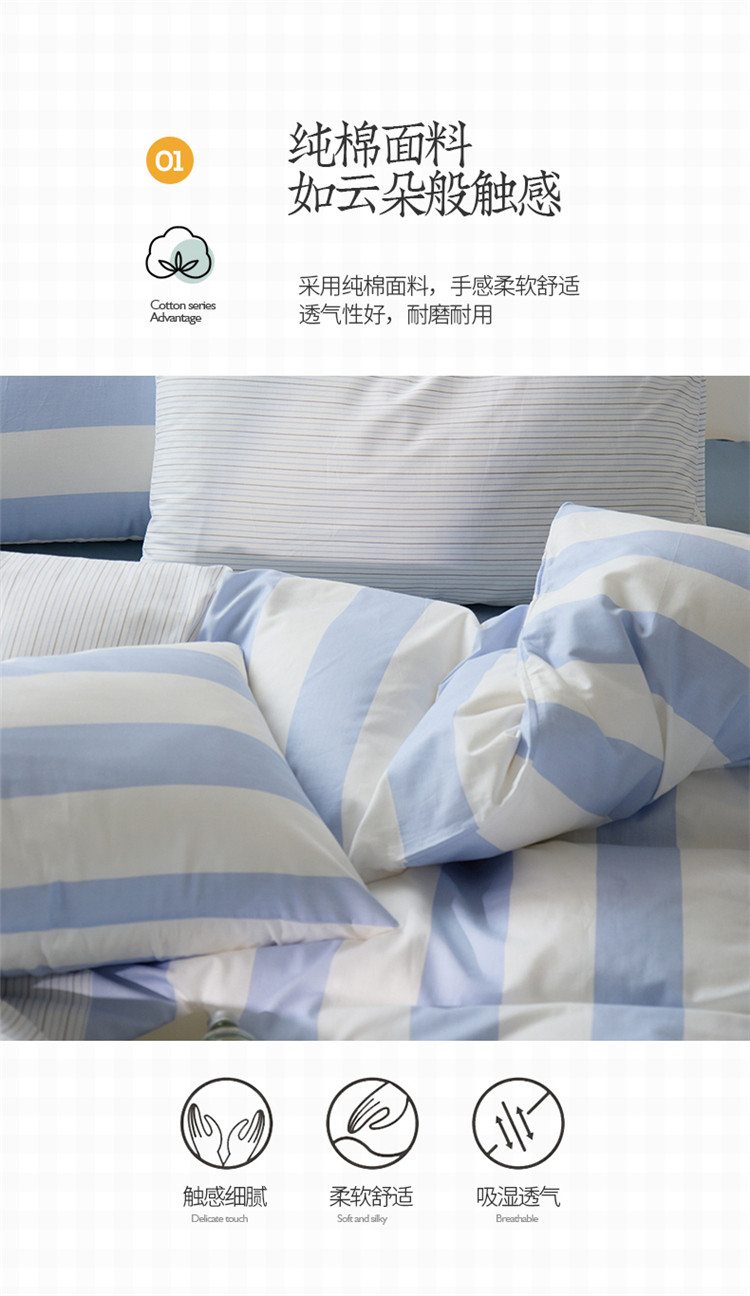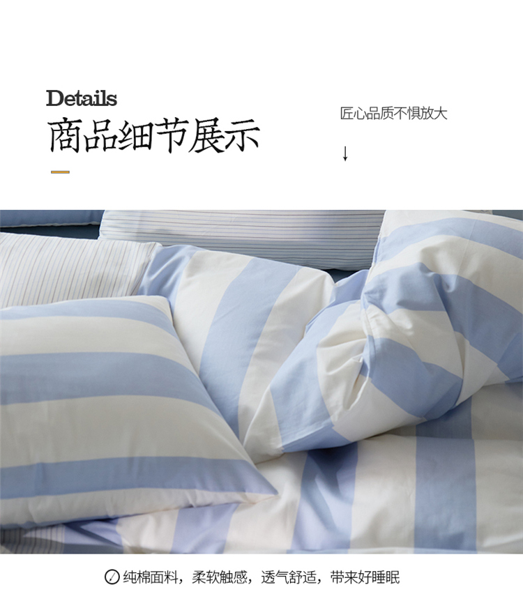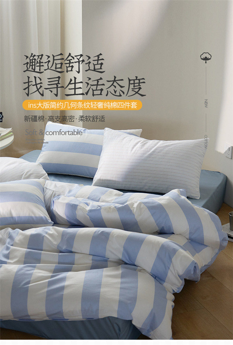 商品名称:桃子 新款ins博主大版简约几何条纹轻奢拼接条纹纯棉四件套 棉大版-蓝白条纹