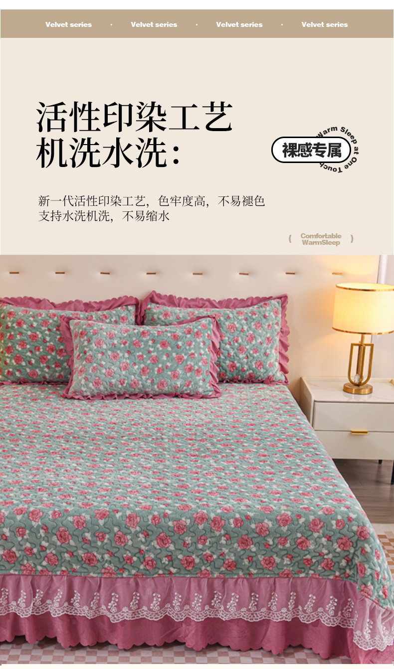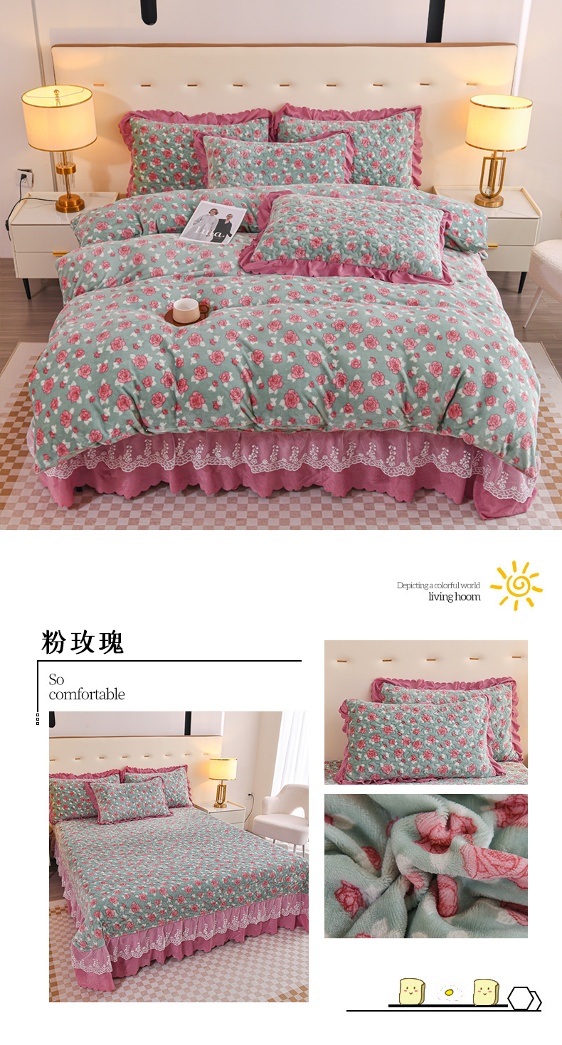 (总)雅眠居 直播爆款纯色宝宝绒床盖款四件套花边夹棉床裙款三件套,宝宝绒-粉色,宝宝绒-卡其,宝宝绒-烟灰,宝宝绒-紫色,宝宝绒-草绿,宝宝绒-深蓝