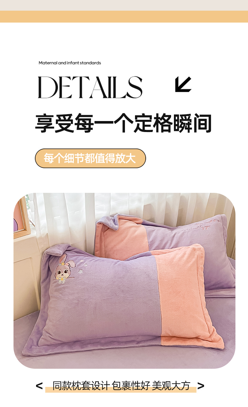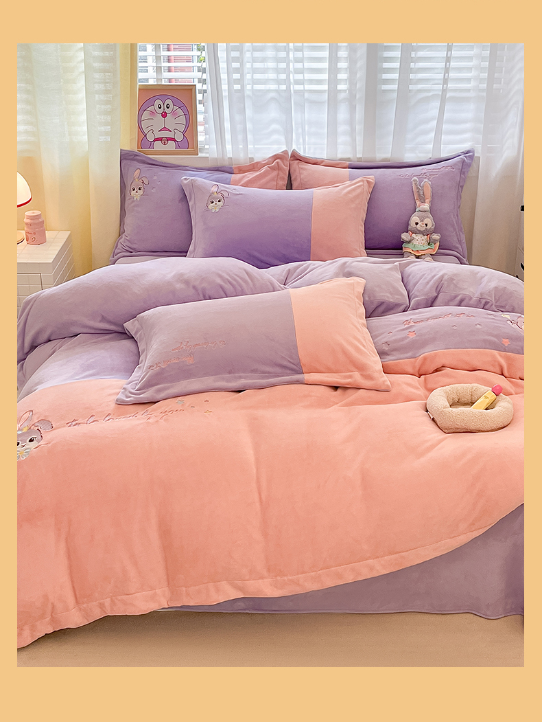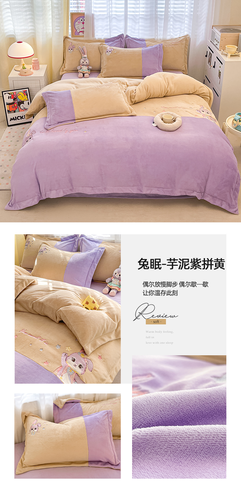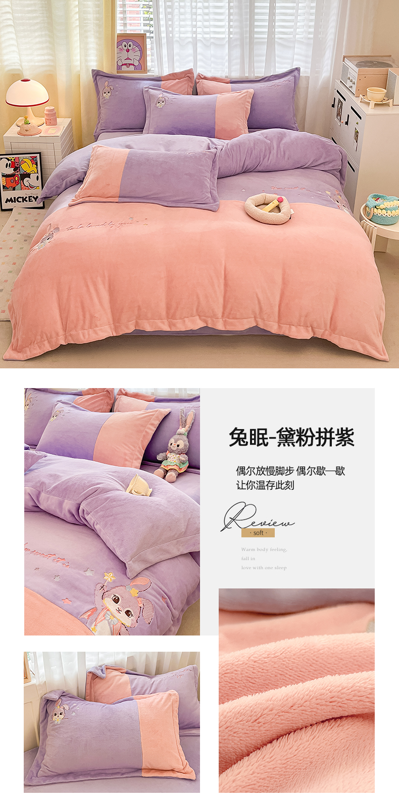 (总)爱上家居 2024新款AB版兔兔绒牛奶绒四件套,粉色,灰色,绿色,驼色,紫色