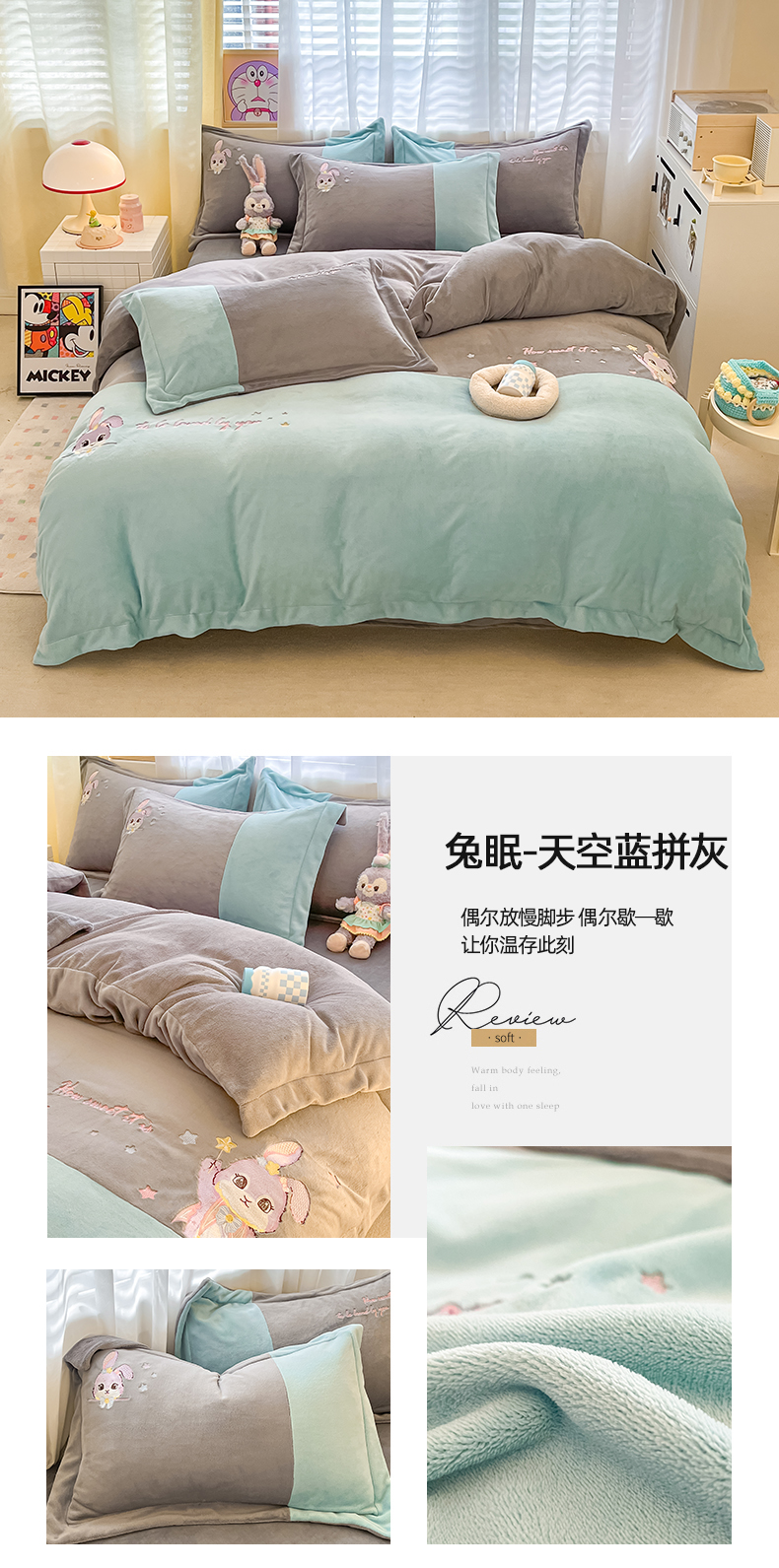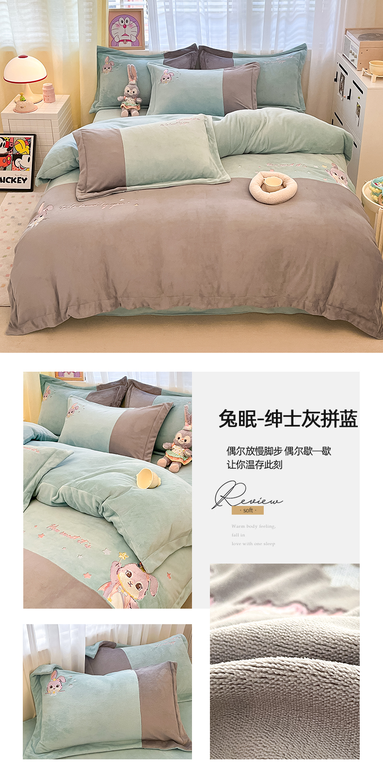 商品名称:(总)爱上家居 2023新款保暖加厚卡通刺绣牛奶绒四件套