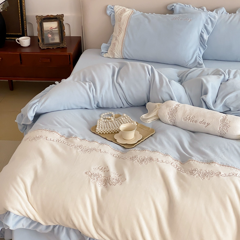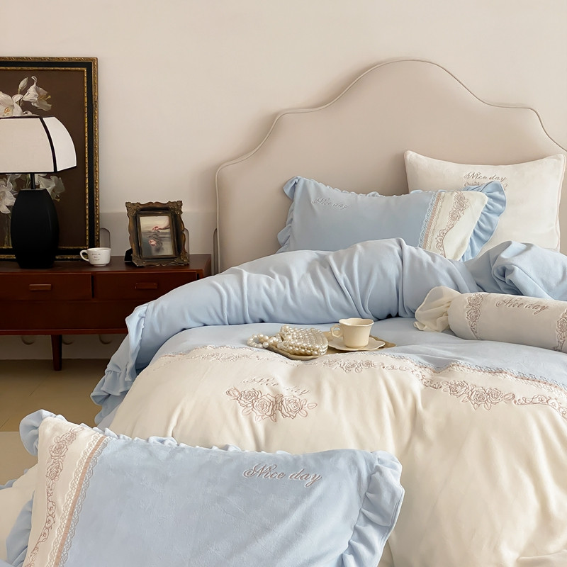 馨蕊 2023新款轻奢煦暖绒刺绣四件套 丽娜-北卡蓝