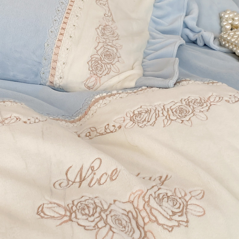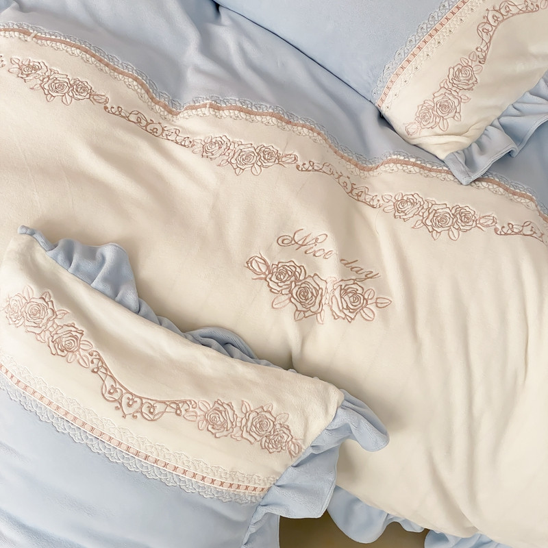 商品名称:馨蕊 2023新款轻奢煦暖绒刺绣四件套 丽娜-北卡蓝