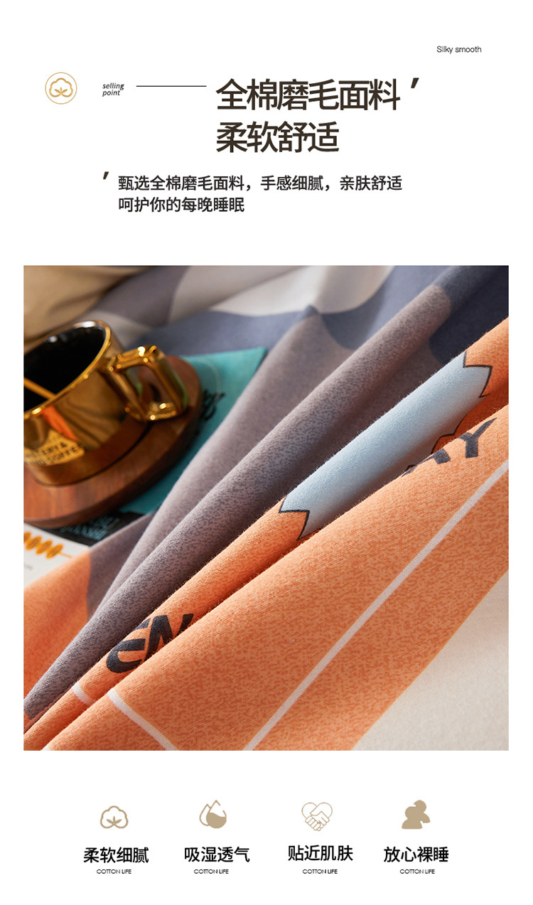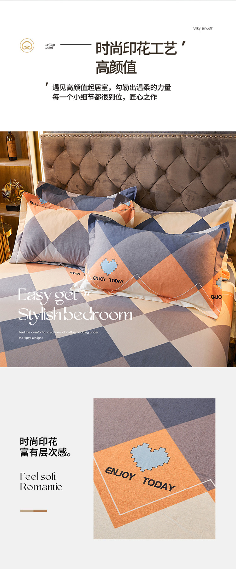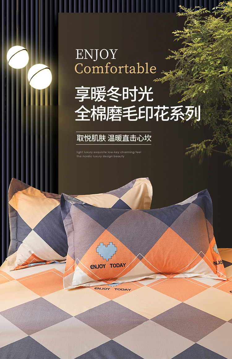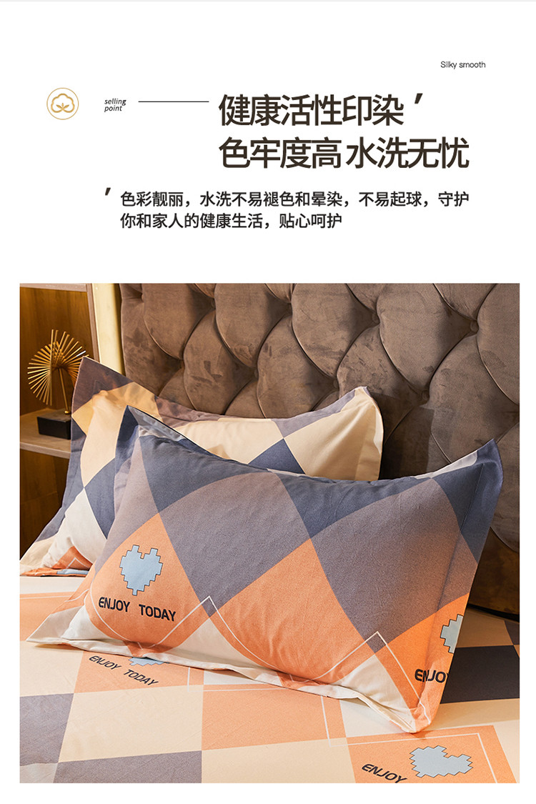 商品名称:伊而梦 2023新款全棉磨毛印花四件套系列单品枕套 乐享时光-桔