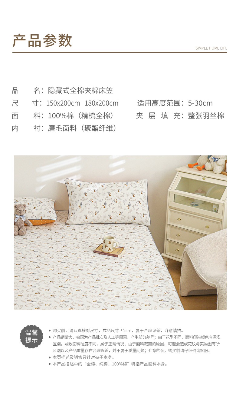 180*200+30cm夹棉床笠