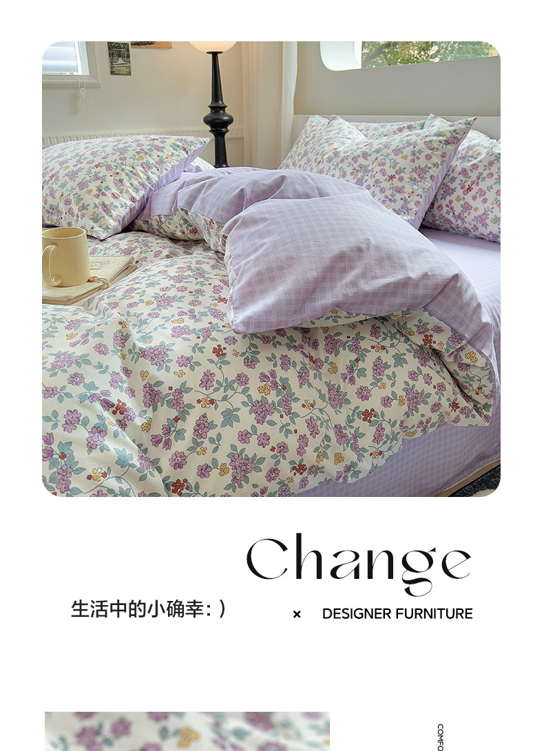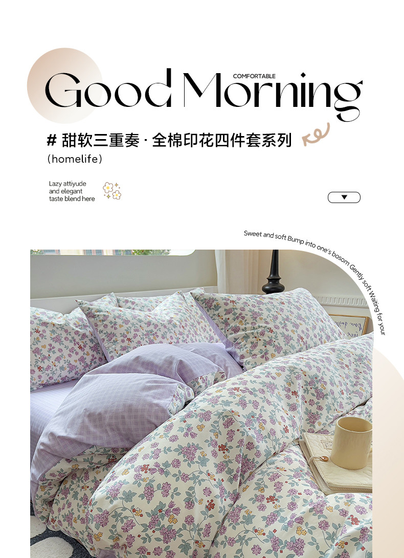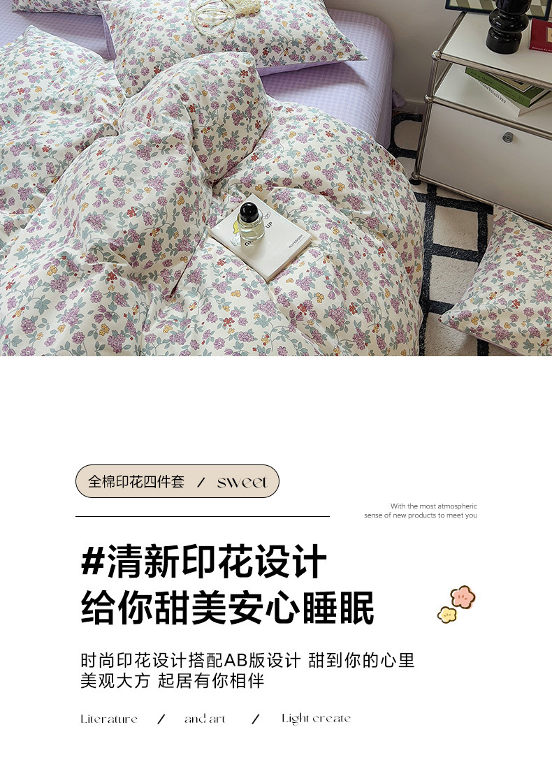 当前位置: 91家纺网 > 商品网购 > 床品套件 > 四件套 > 全棉普通四件套 > 百寐2024新款小清新碎花卡通13372全棉四件套纯棉床单床笠款 紫悦