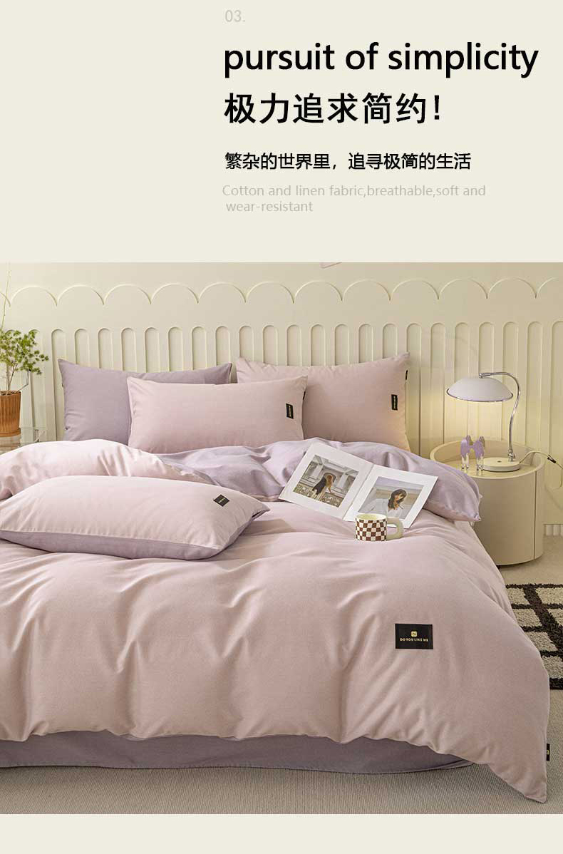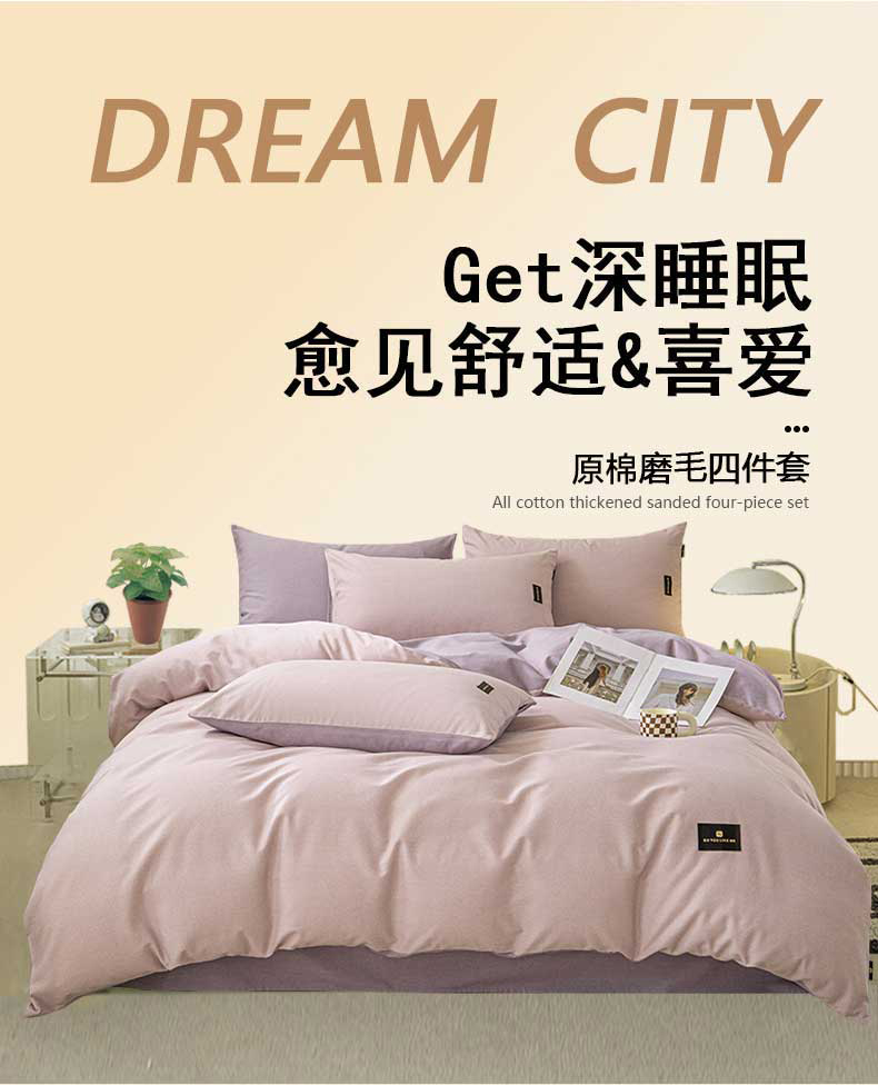 当前位置: 91家纺网 > 商品网购 > 床品套件 > 四件套 > 磨毛活性四件套 > 涵宸家纺 棉磨毛-纯色织标-四件套(含单品) 浅紫+烟紫