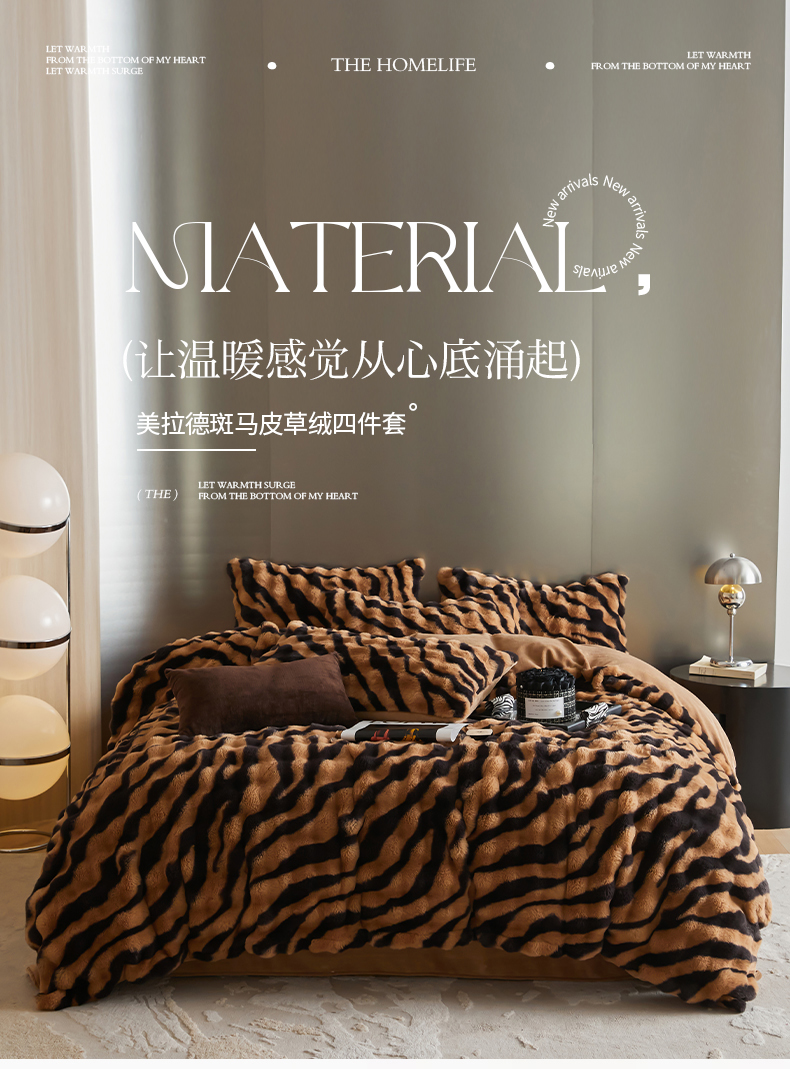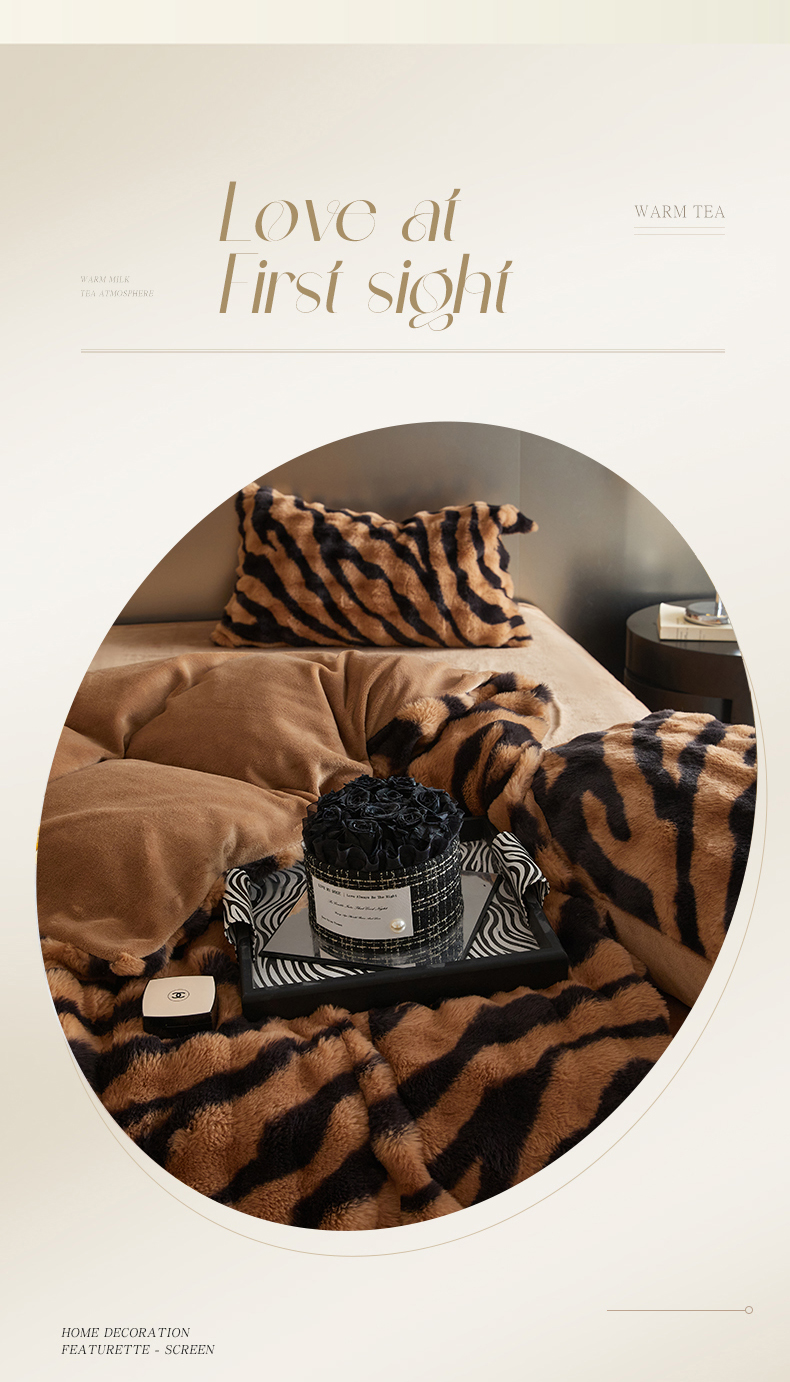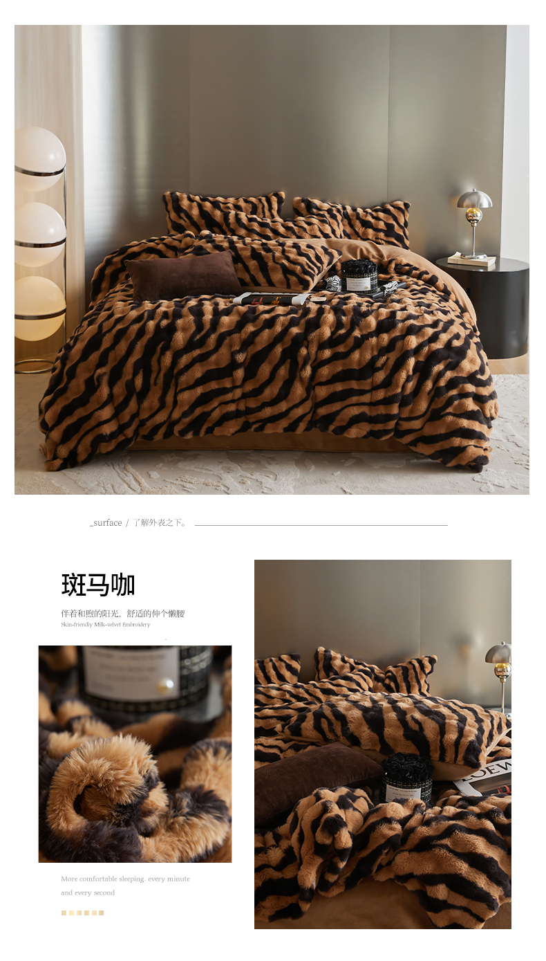 金奇达家纺 2024秋冬保暖加厚绒类斑马皮草绒四件套-【美拉德】系列 斑马咖