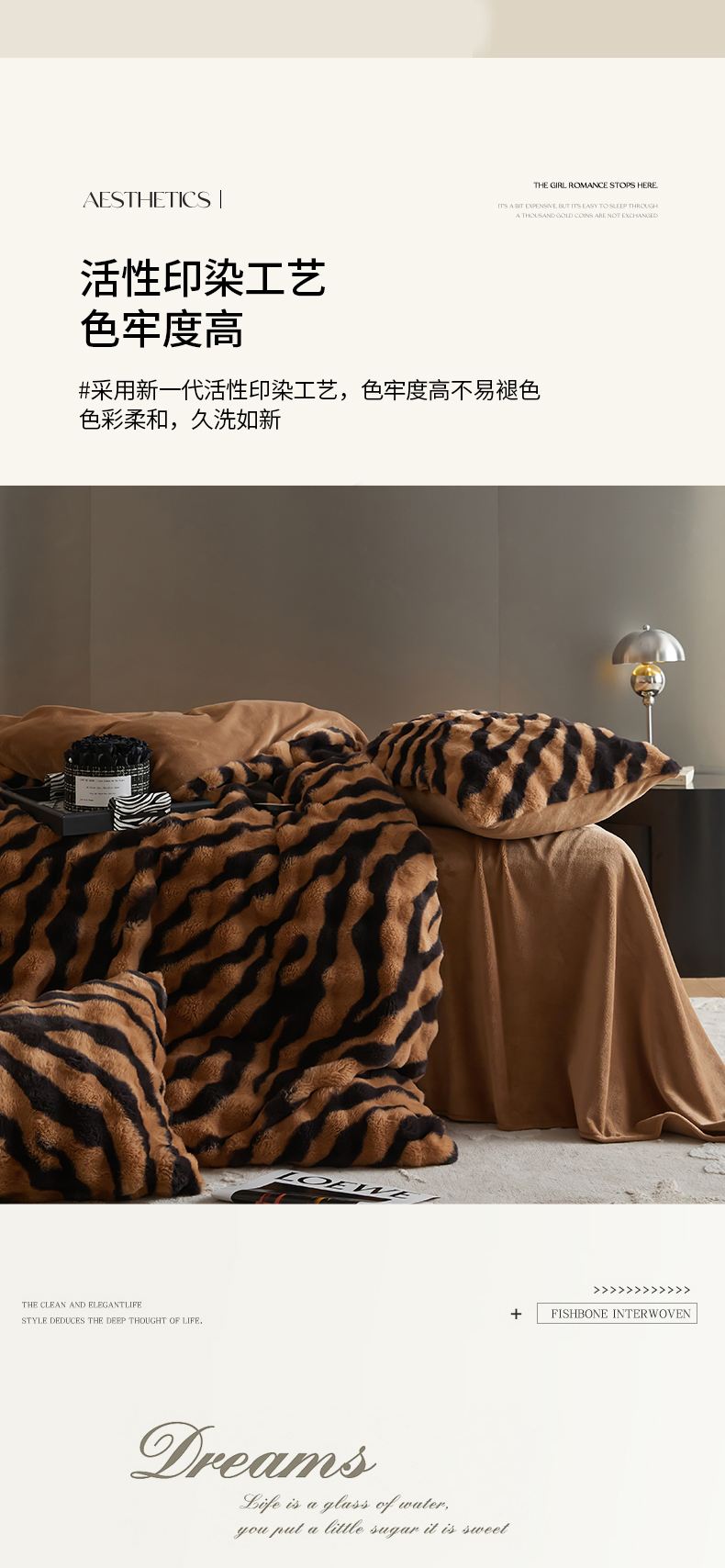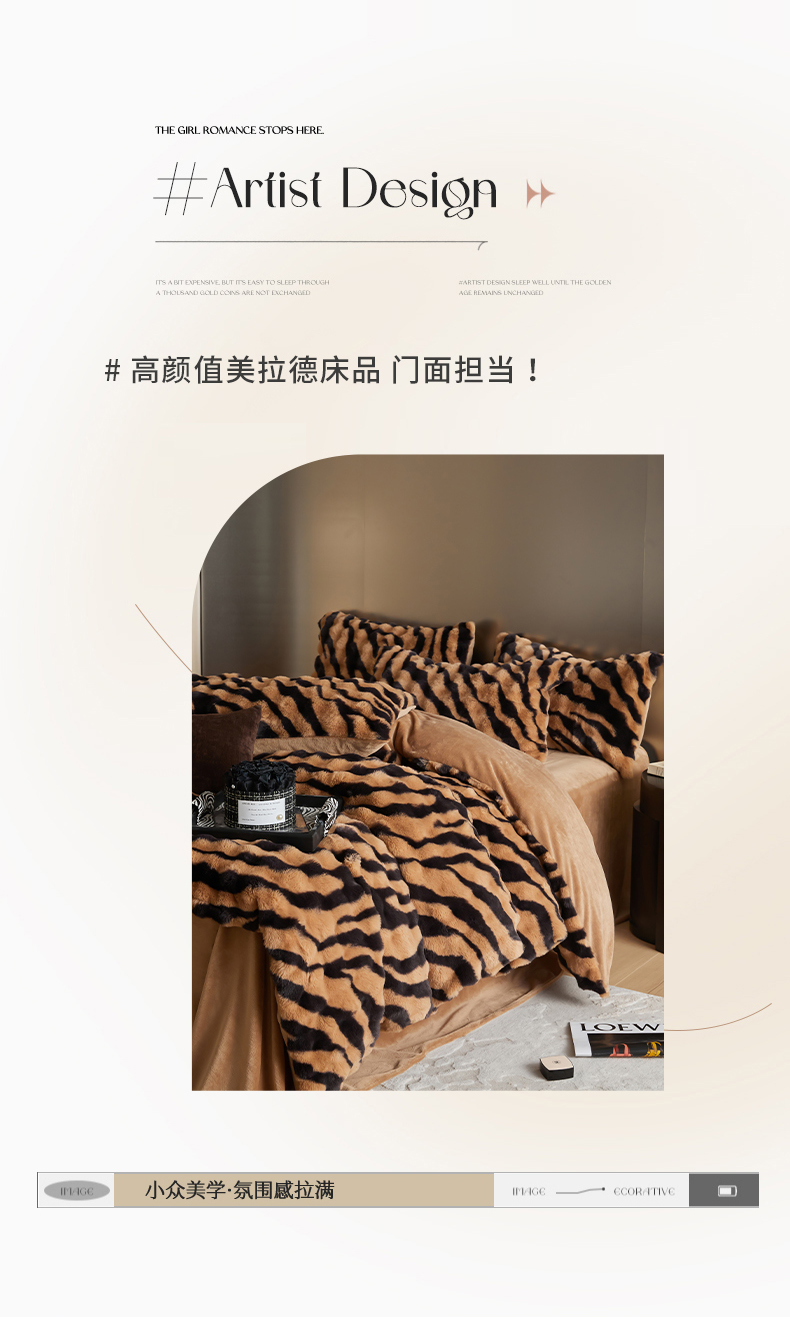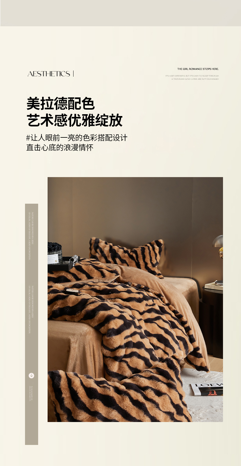 金奇达家纺 2024秋冬保暖加厚绒类斑马皮草绒四件套-【美拉德】系列 斑马咖