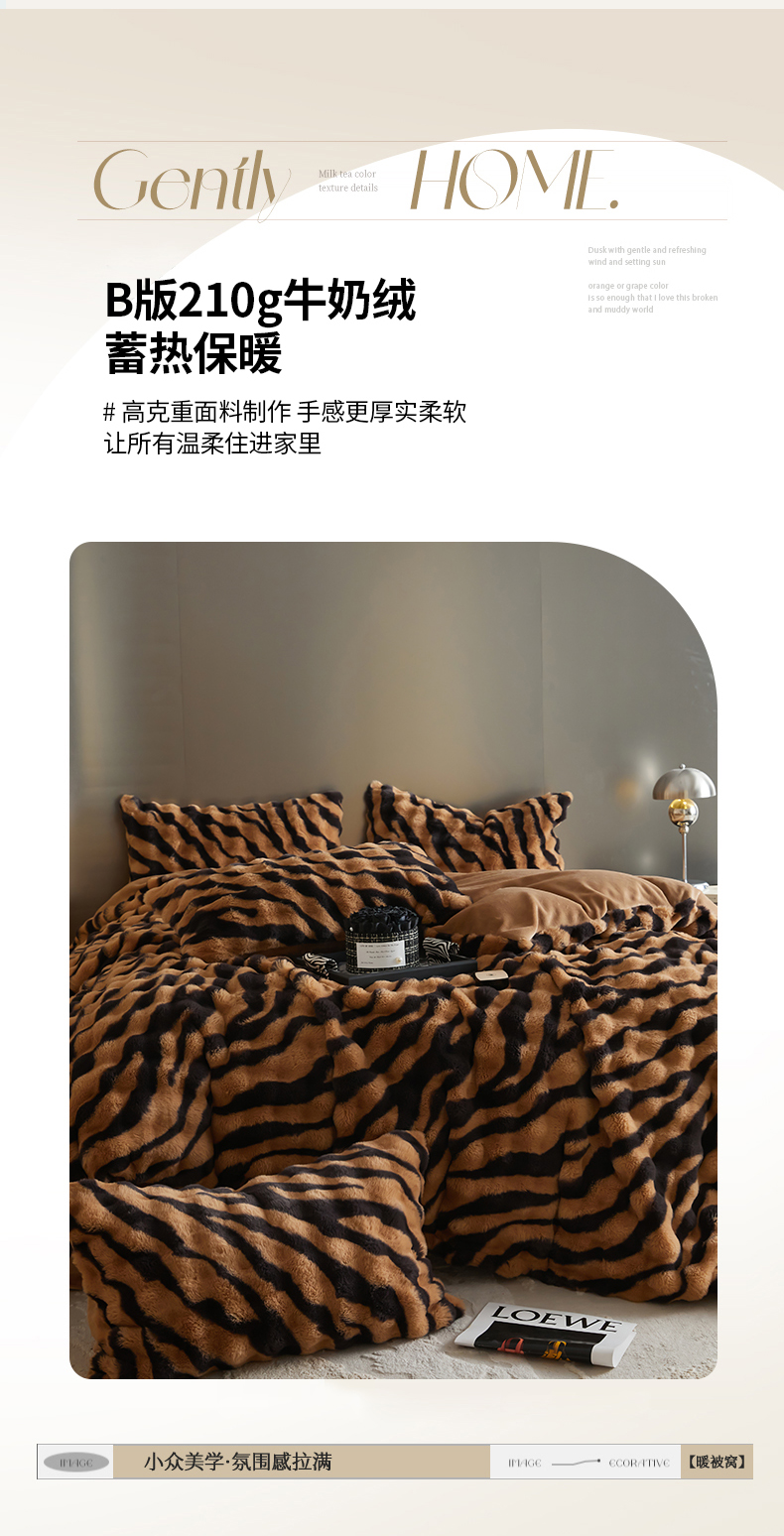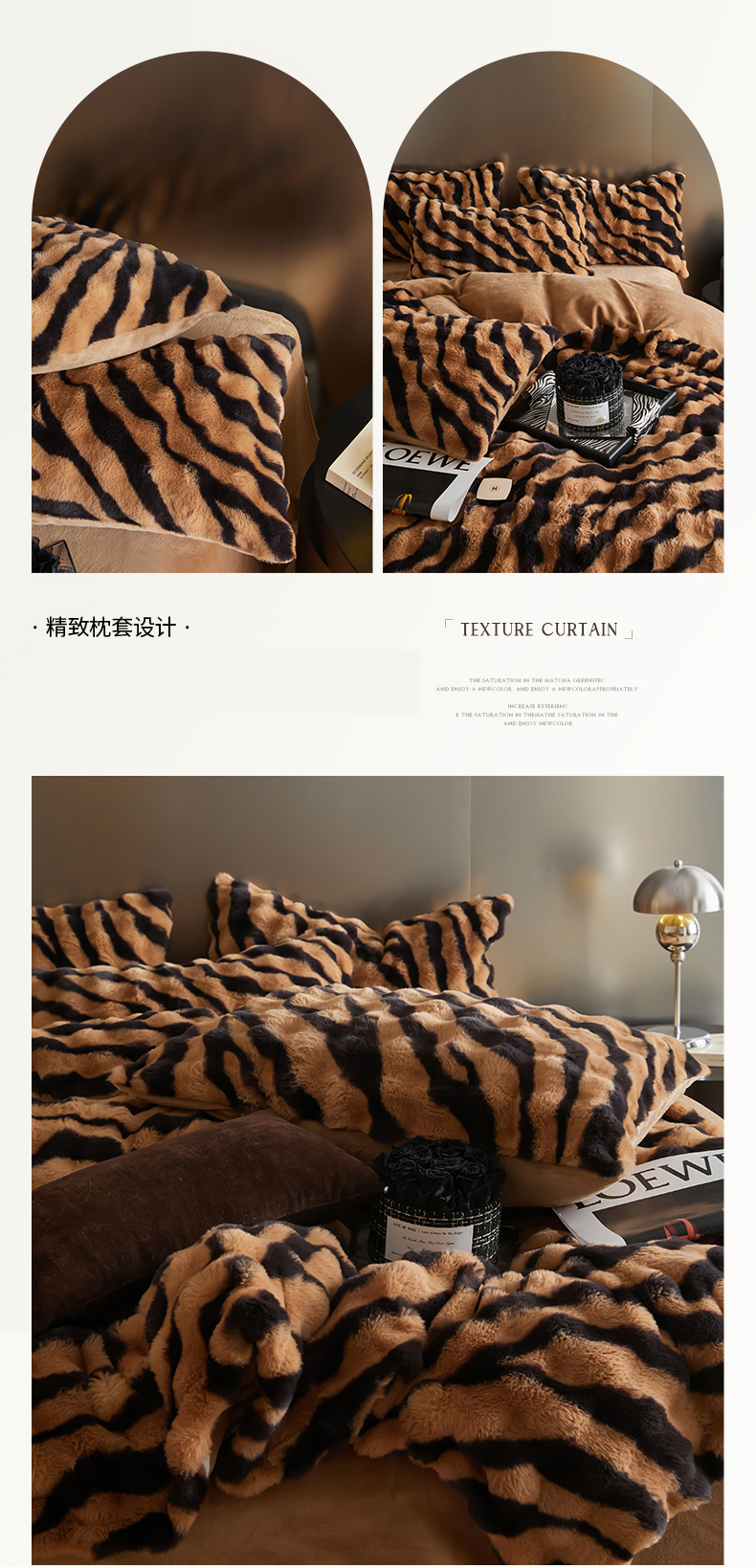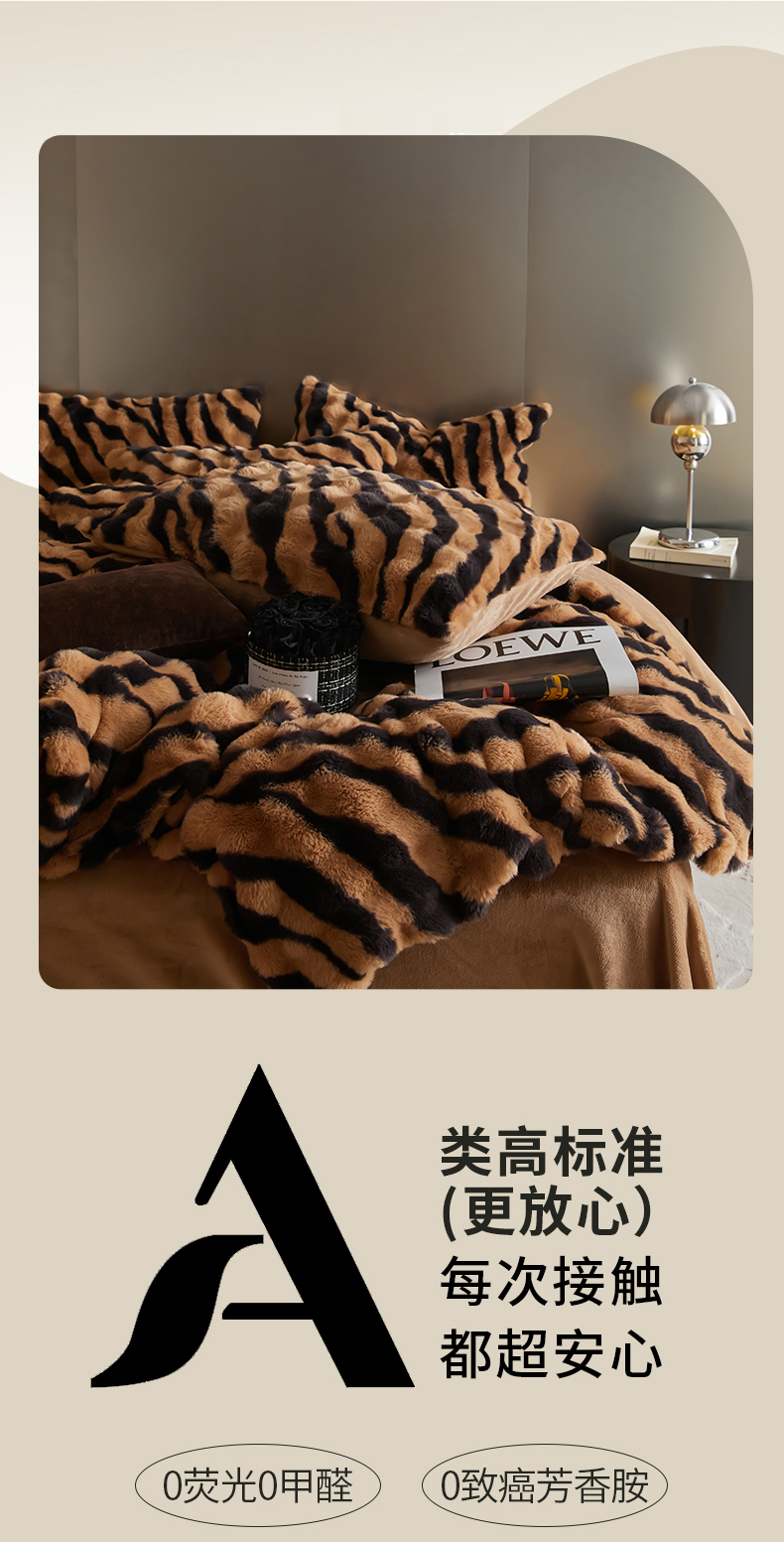 商品名称:金奇达家纺 2024秋冬保暖加厚绒类斑马皮草绒四件套-【美拉德】系列 斑马咖
