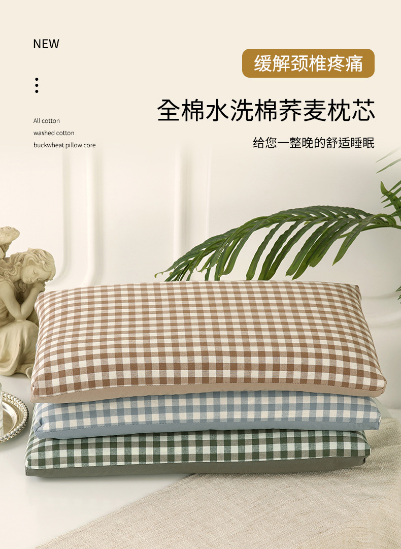 (总)明星枕业 2025新款全棉色织水洗棉枕头枕芯,凯西亚兰45*15+10 - 25*40荞麦壳,克鲁奇绿45*15+10 - 25*40荞麦壳