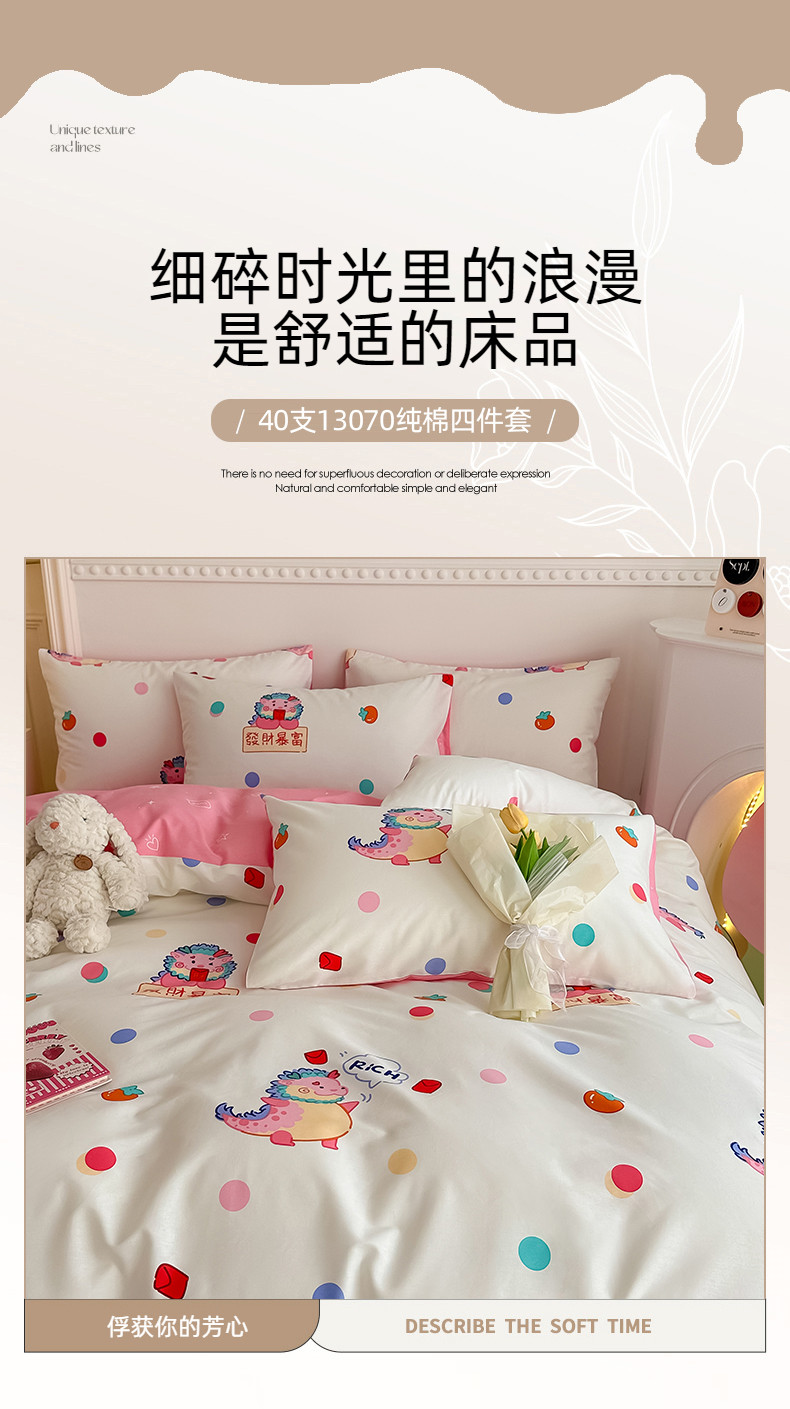 商品名称:简宜家居 2025新款40支13070纯棉花卉系列四件套 悠哉龙